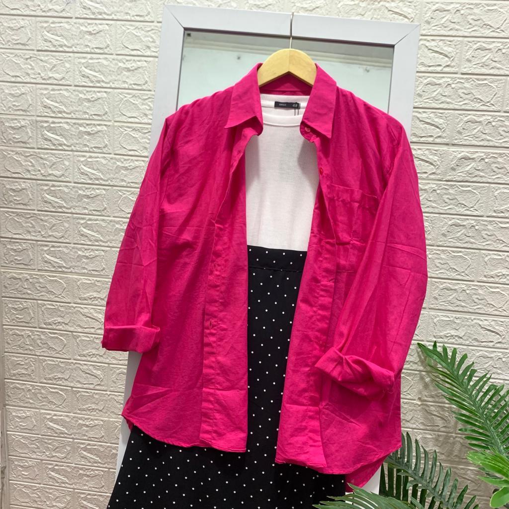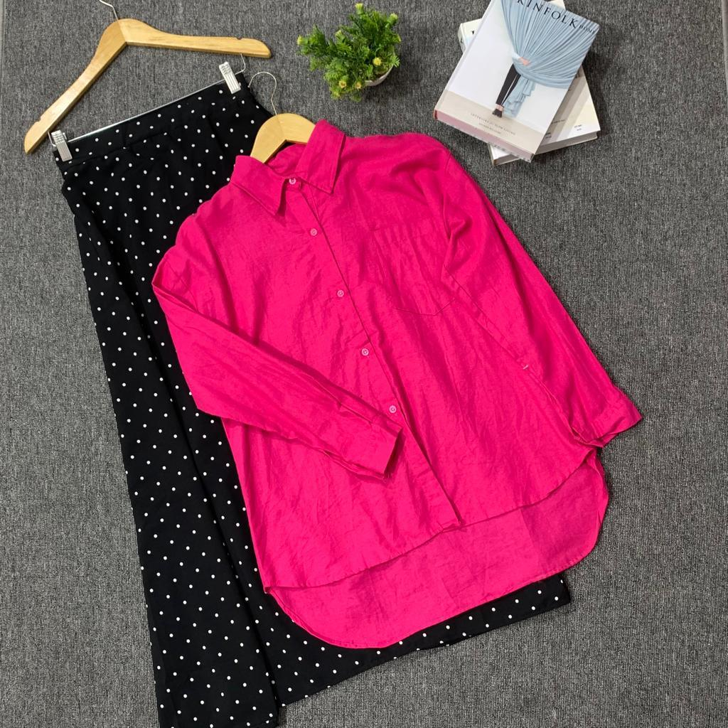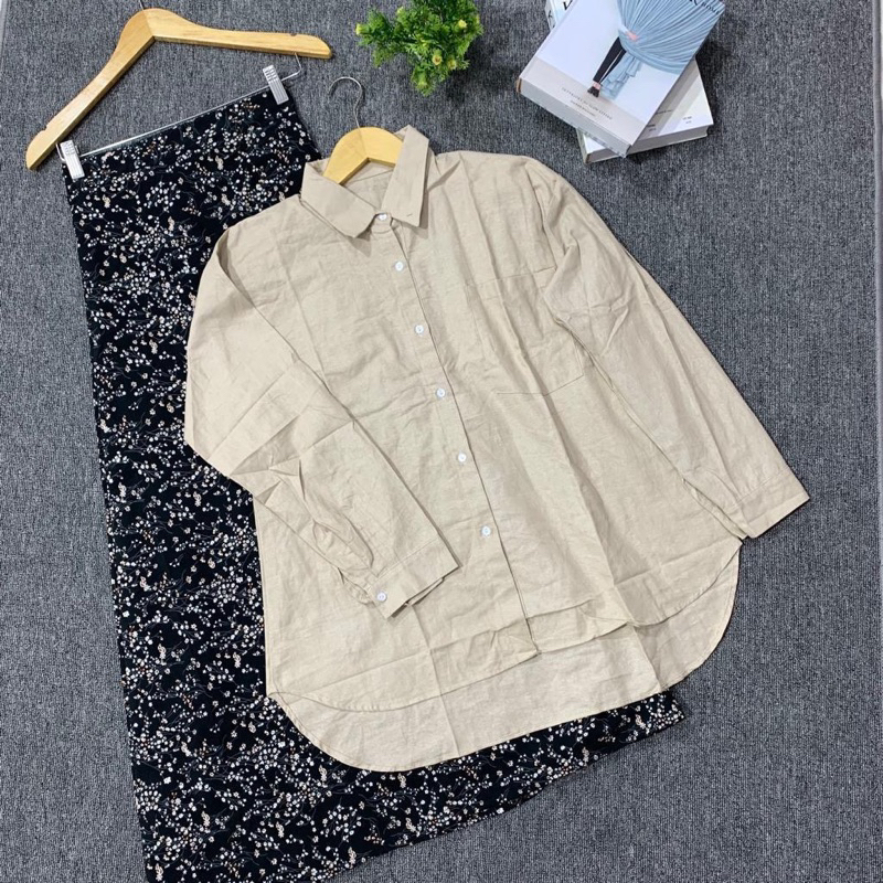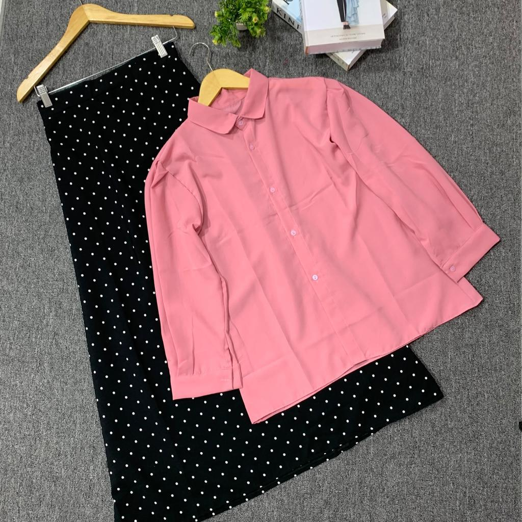 KEMEJA ONESET 2IN1 SHIRT SKIRT MOTIF korean style women's suit LINEN top PUFFY RUFFY shirt / polka skirt suit