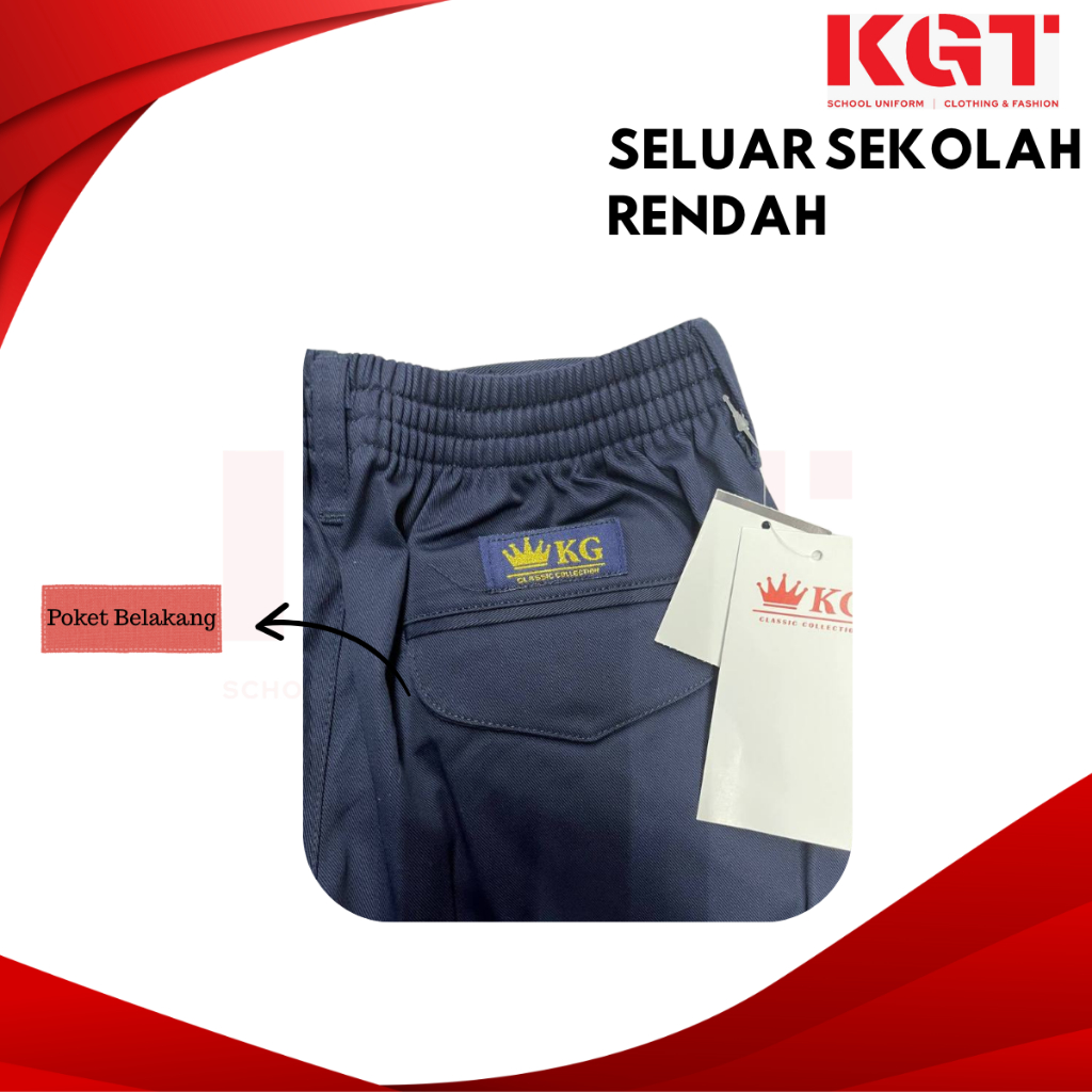 KGT SELUAR PANJANG BERGETAH SEKOLAH RENDAH BIRU GELAP PRIMARY SCHOOL LONG PANTS COTTON
