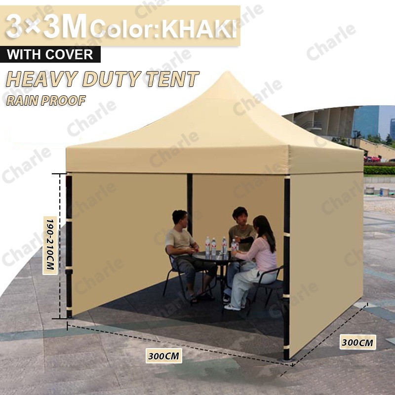 Khemah 10x10 Heavy Duty Besi Tebal Full Set Folding Canopy with Side Wall Night Market Camping Tent Payung Niaga