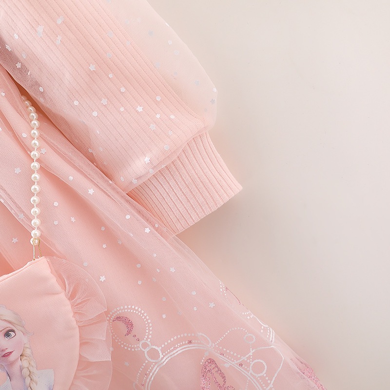 Kid Princess Elsa Cosplay Doll Collar Girls Dress Frozen Christmas Children's Birthday Dress+Bag
