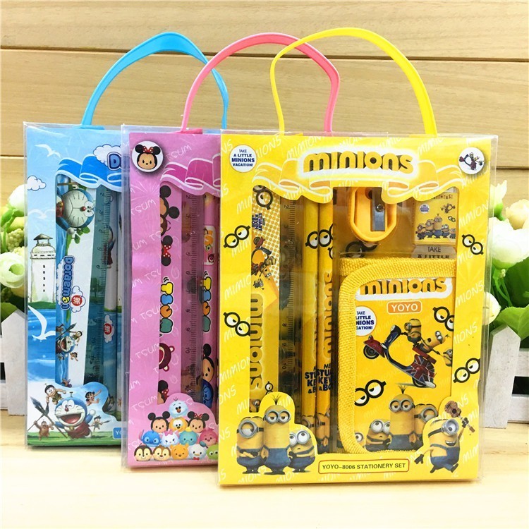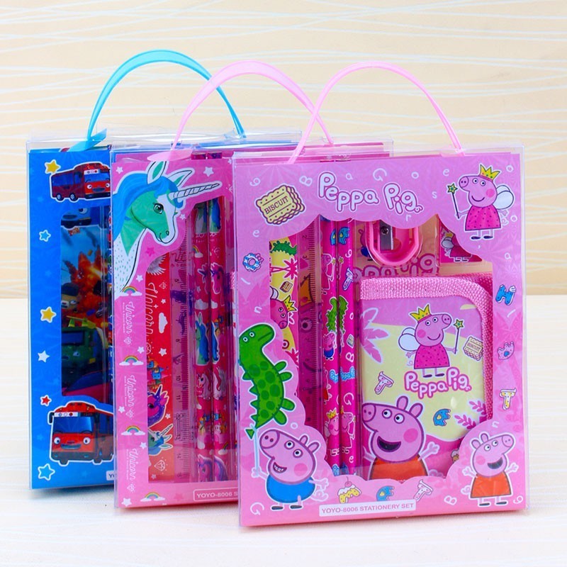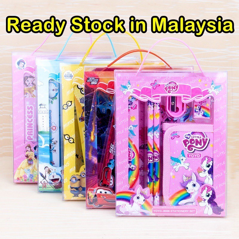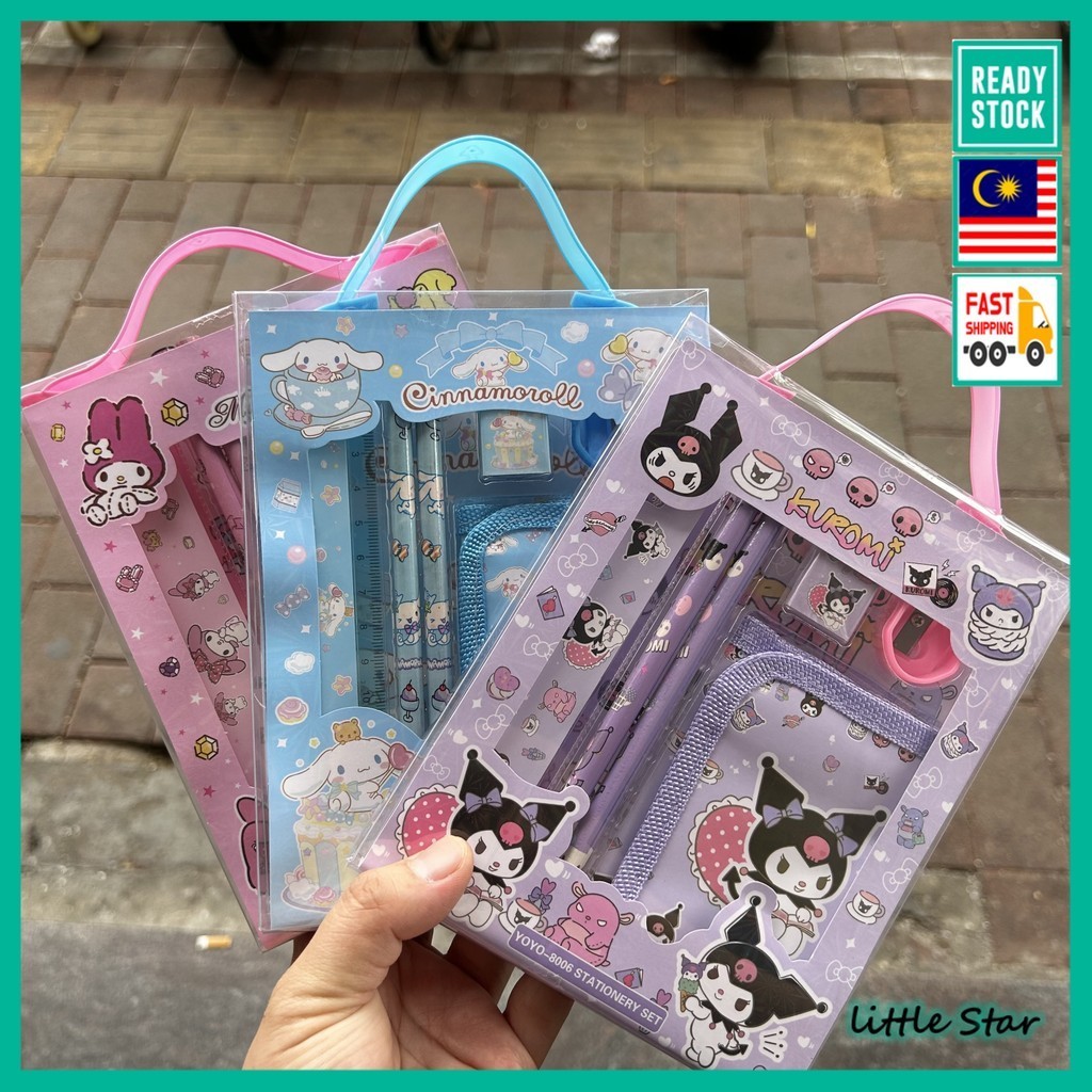 Kid Stationery 6 in 1 Set Children Birthday Party Bag Wallet Set Kuromi Melody Kitty Cinnamoroll Frozen Spiderman
