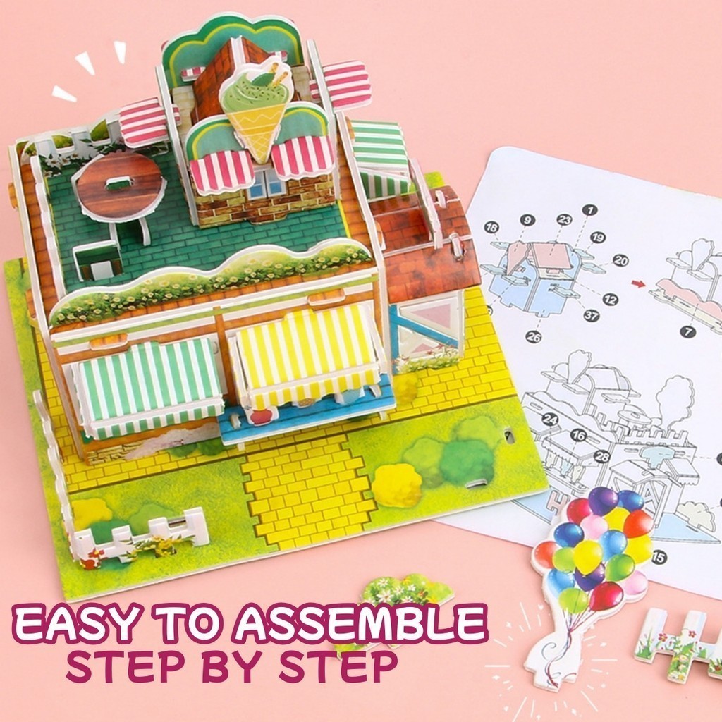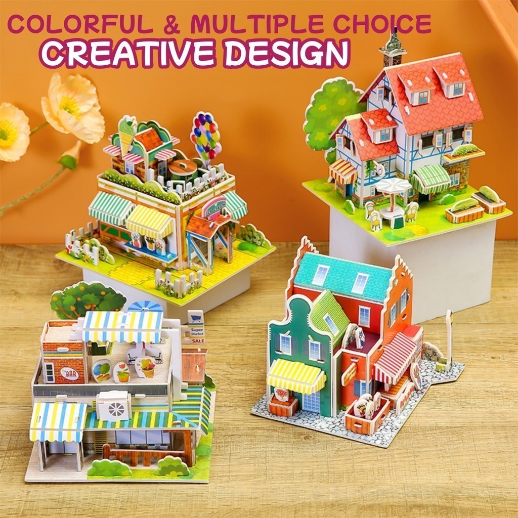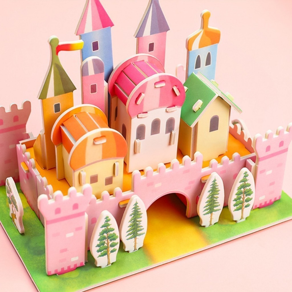Kids 3D DIY Jigsaw Puzzle Paperboard Toy Building House Castle Play Art Craft Early Learning Children Educational Toys