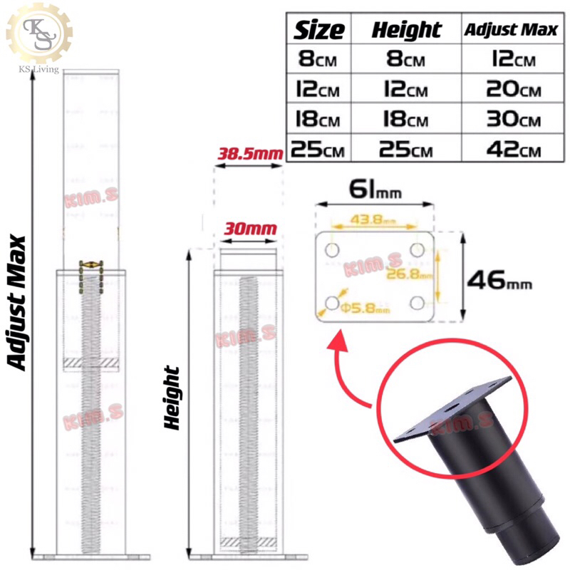 Kim.S Heavy Duty Solid Metal Adjustable Furniture Cabinet Floor Sofa Feet Height Cabinet Leg Retractable Kaki Stand