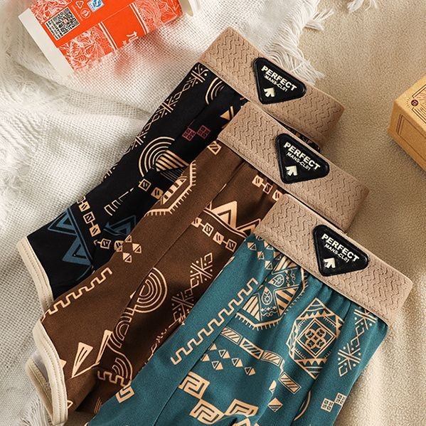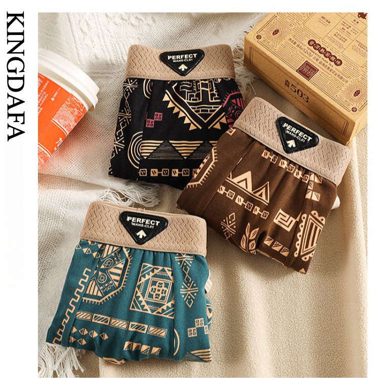KINGDAFA Amaya Print Vintage Men Boxer Briefs Breathable Men Underwear Soft Boxer Lelaki Seluar Dalam Lelaki Fashion Spender Lelaki 内裤男 男生内裤 男士内裤