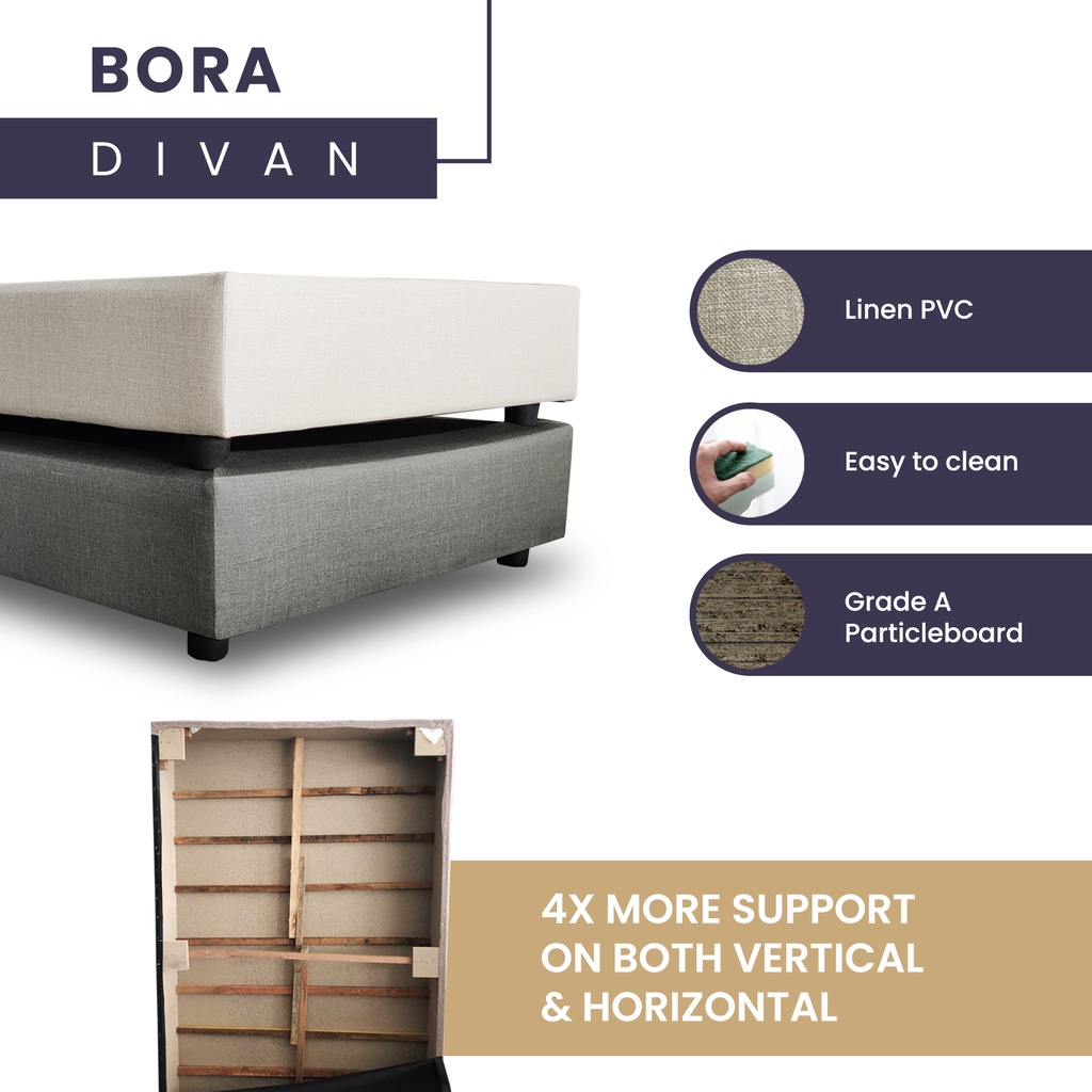 KITA BORA Divan, Linen PVC, Easy to Clean Firm Base, Sizes (King, Queen, Super Single, Single)