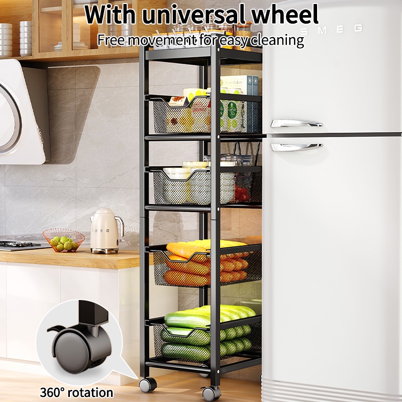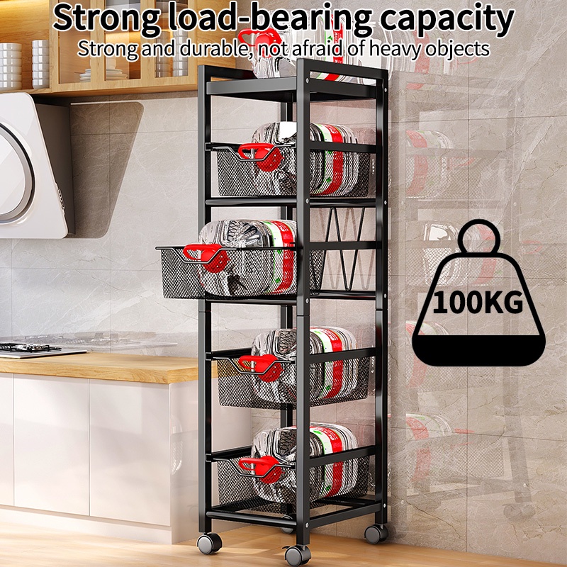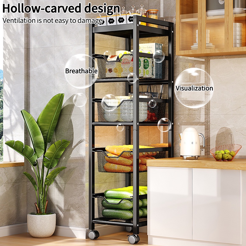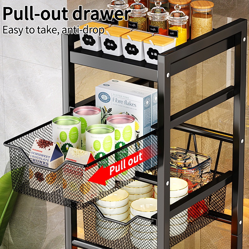 Kitchen Trolley Rack Narrow Storage Racks Spice Rack Sliding Cabinet Rak Dapur