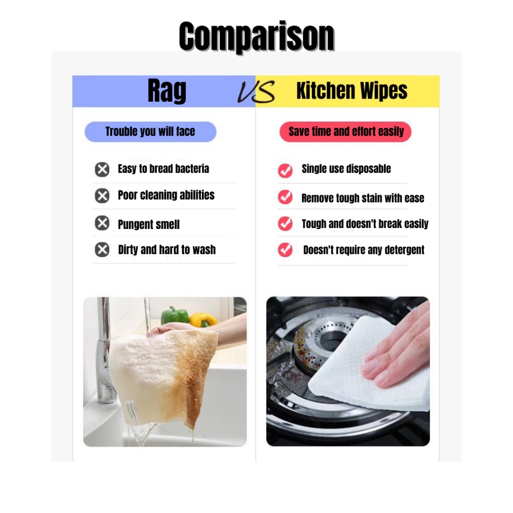 Kitchen Wipes (Saiz Besar) Disposable Kitchen Wet Tissue Cleaning Degreasing Dapur Tisu