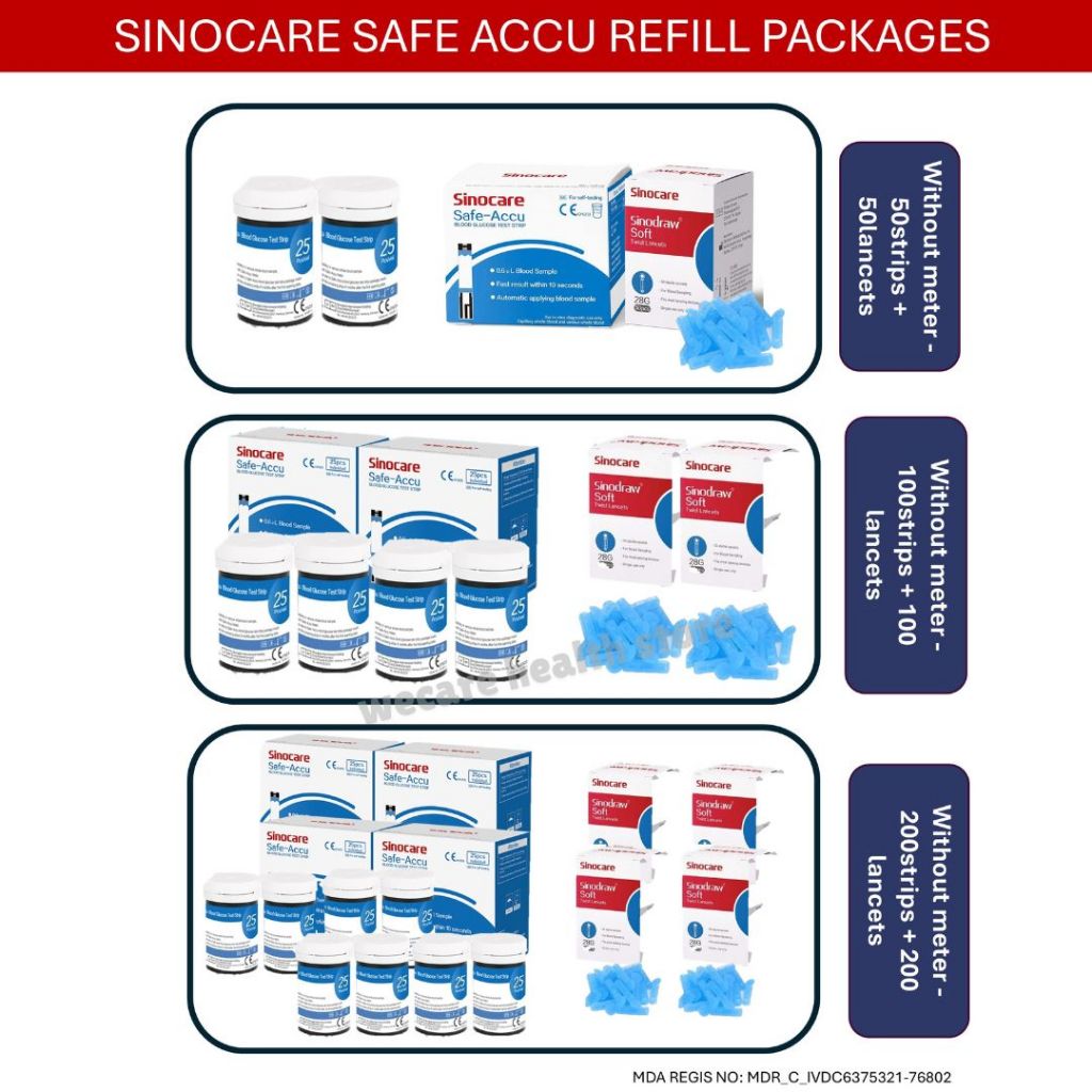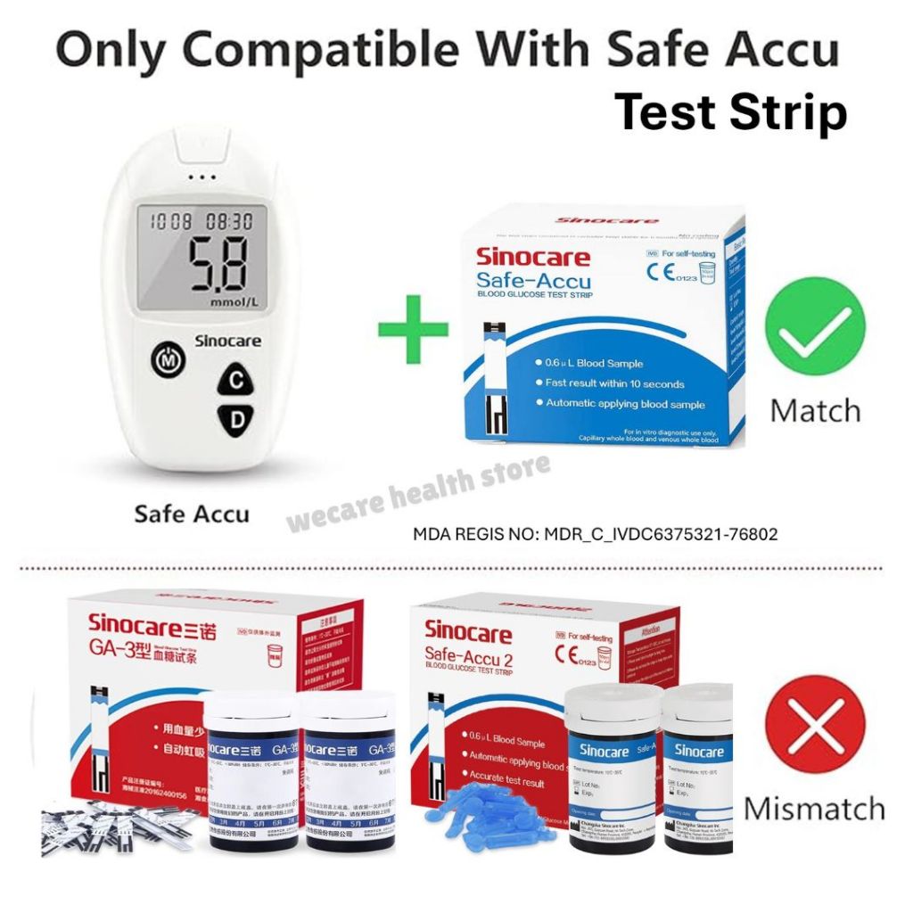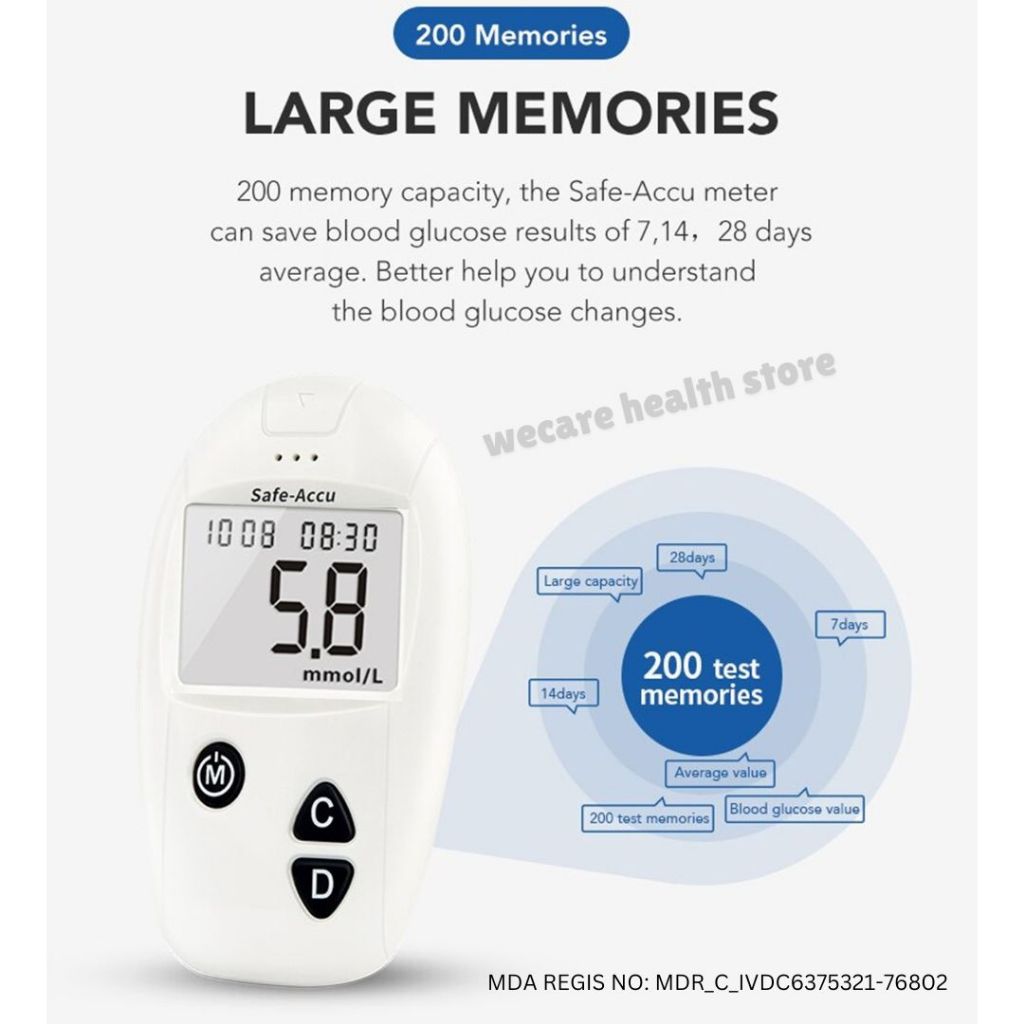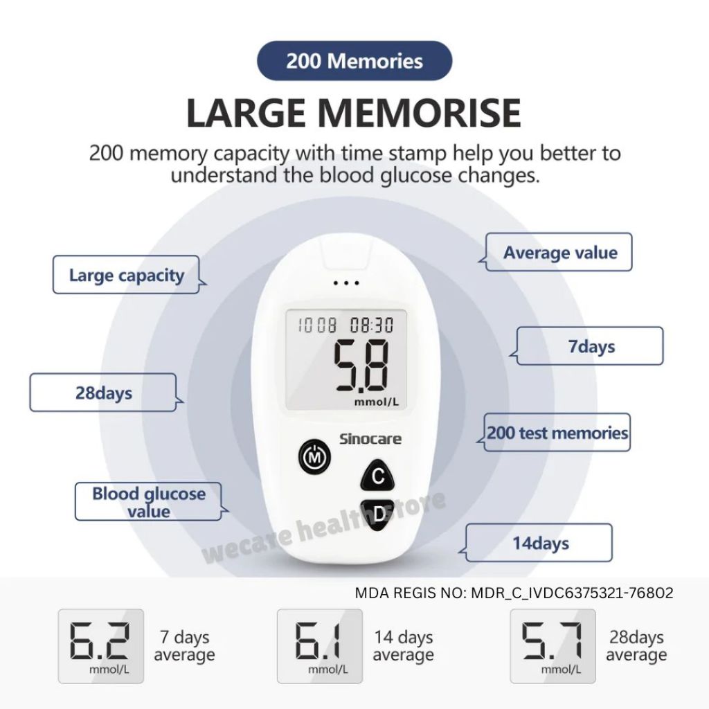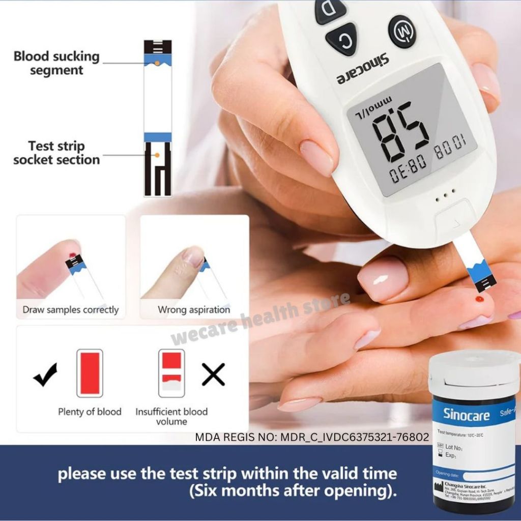 【KKM LULUS】Sinocare Safe Accu Blood Glucose Glucometer BSP Mesin Cek Gula Darah Kencing Manis Test