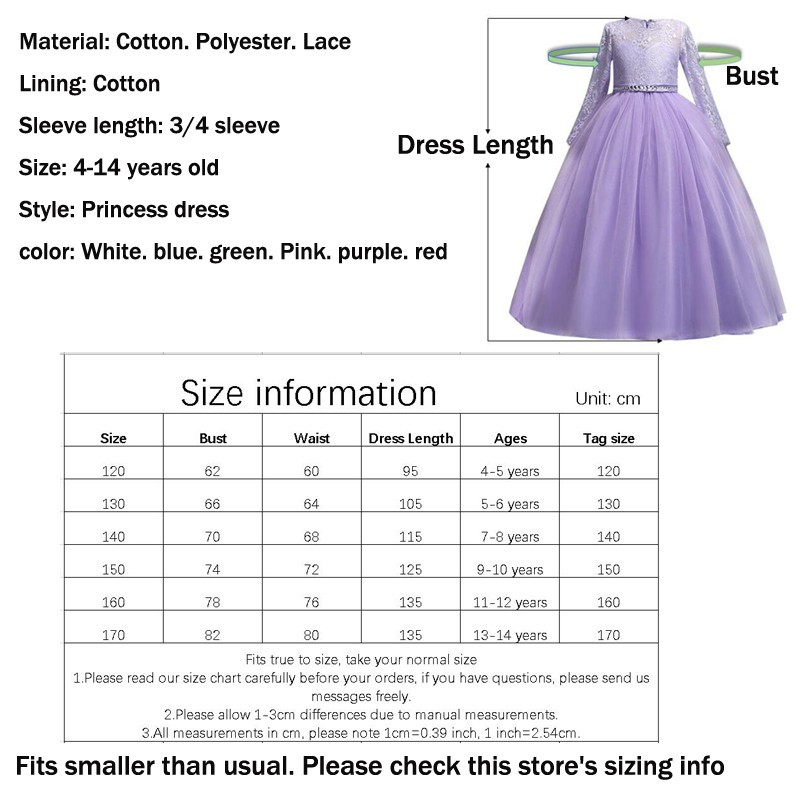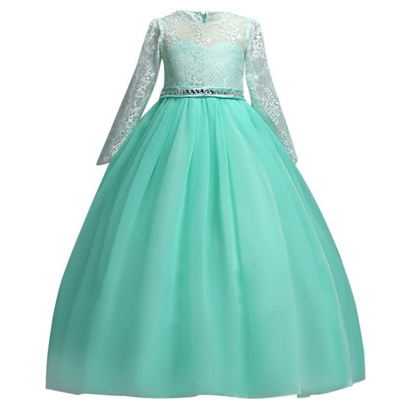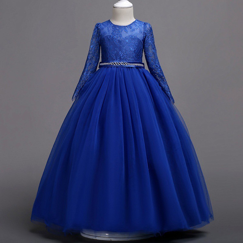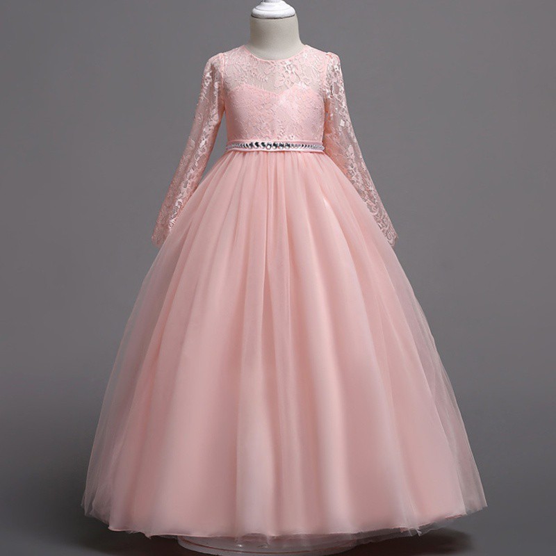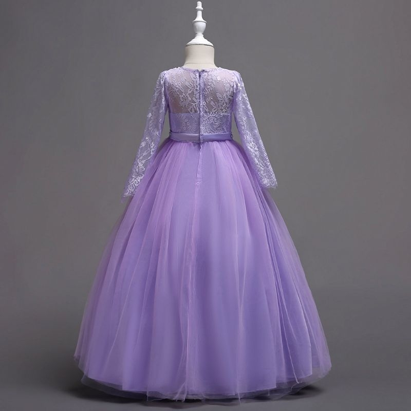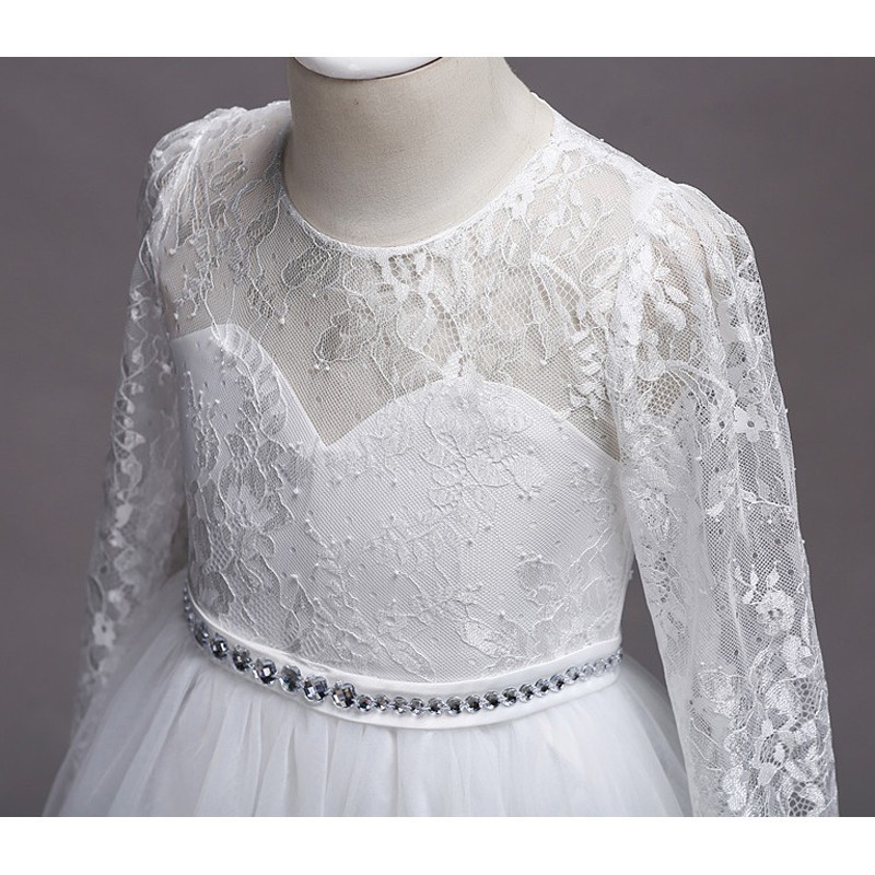 ?? KL READY STOCK 4-14 Yrs Kids Girl Lace Long Sleeve Wedding Elegant Princess Girls Maxi Dresses Costume Ball Gown
