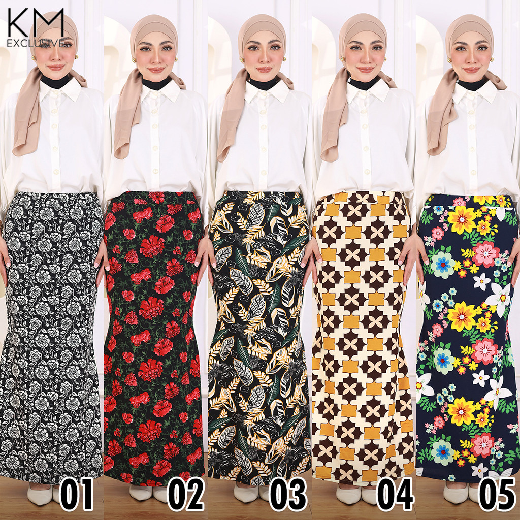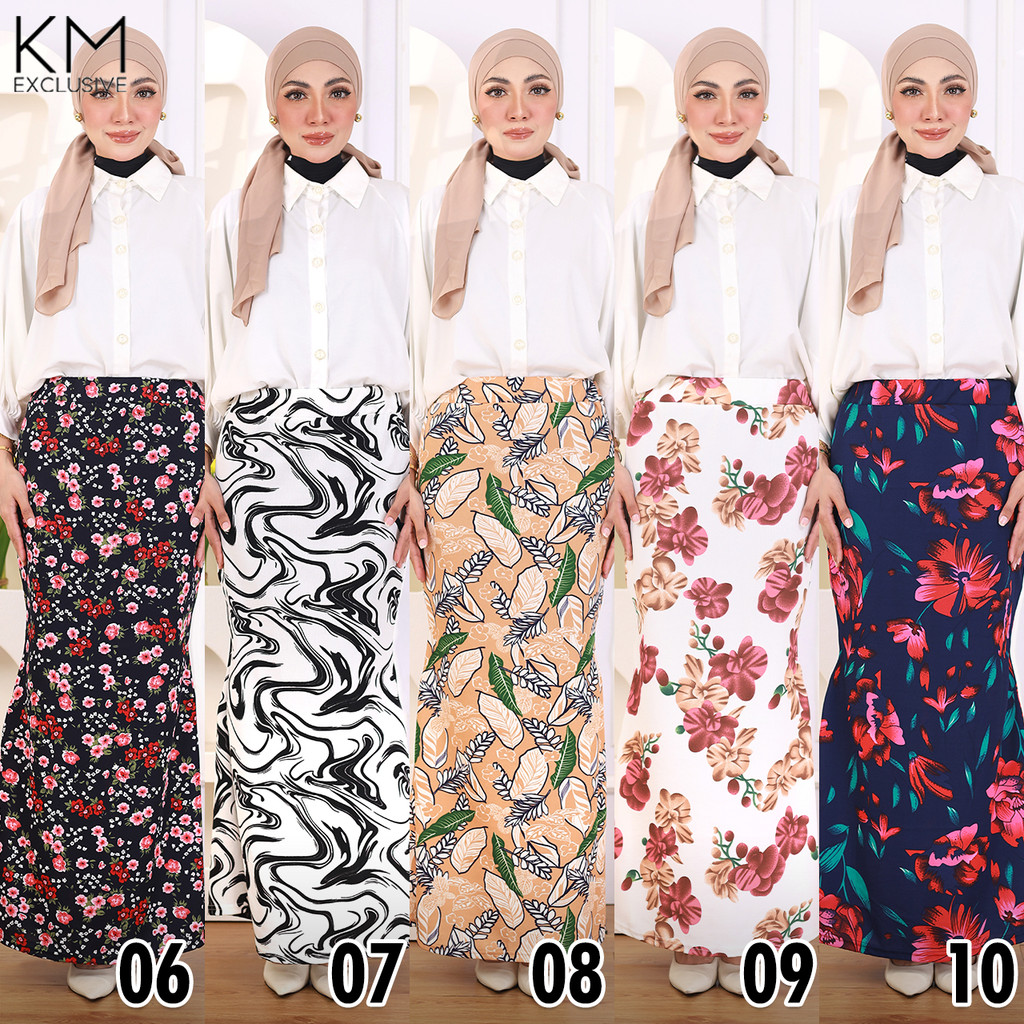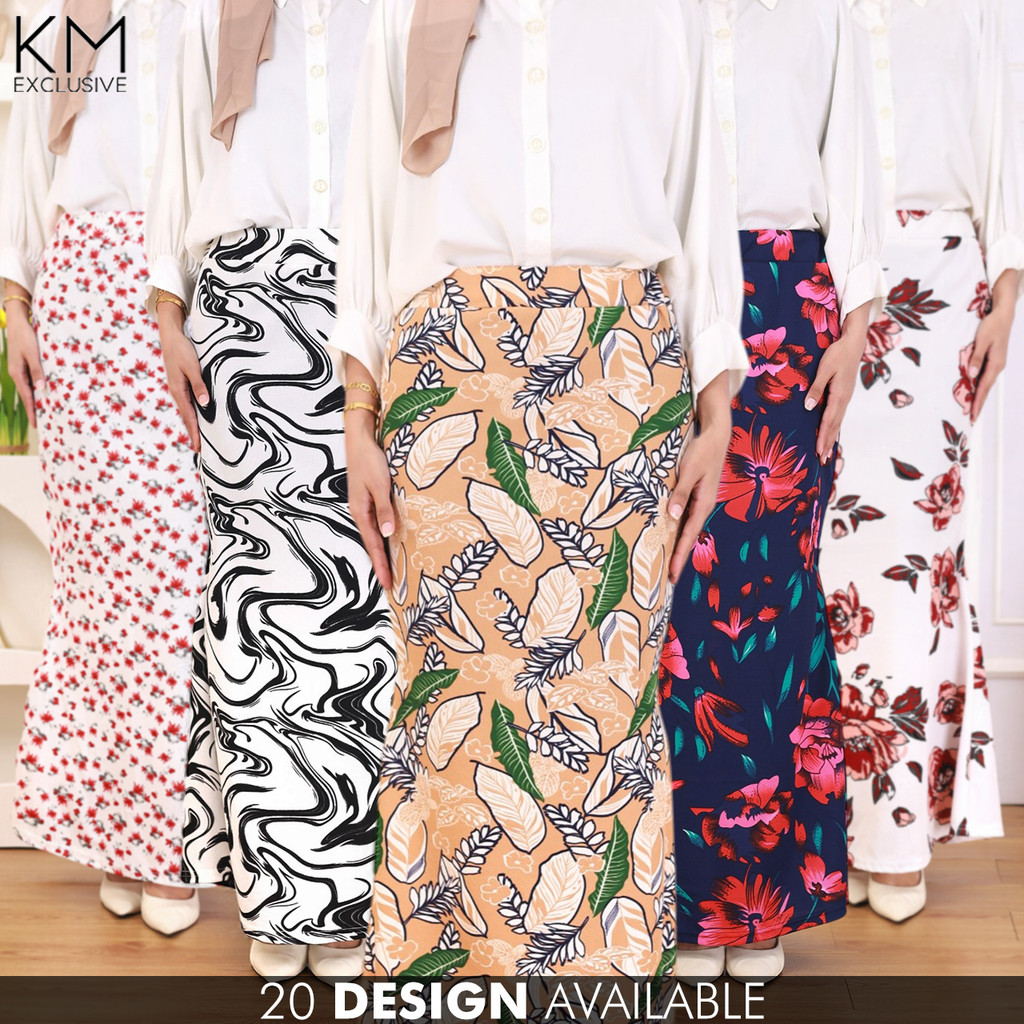 KM Lolita Muslimah Fully Printed Mermaid Elastic Ready Stock Free Women Size Pencil Duyung Skirt Panjang Wanita [S14731]
