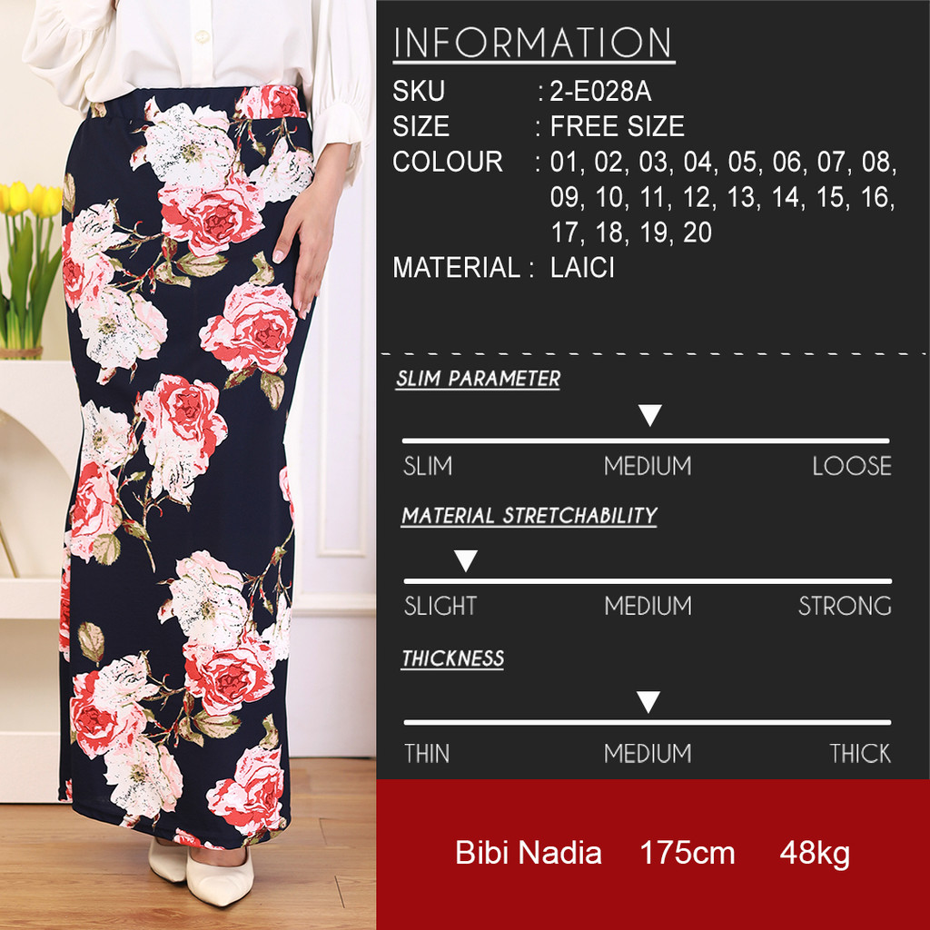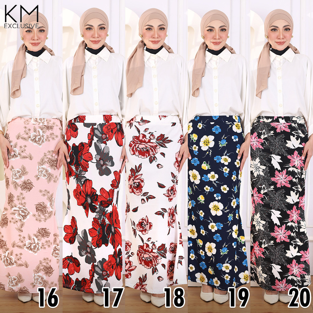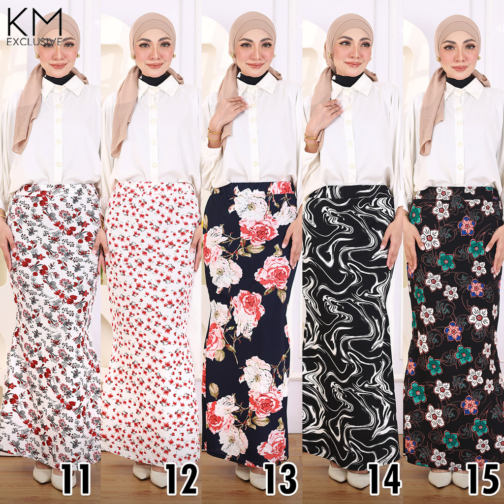 KM Lolita Muslimah Fully Printed Mermaid Elastic Ready Stock Free Women Size Pencil Duyung Skirt Panjang Wanita [S14731]