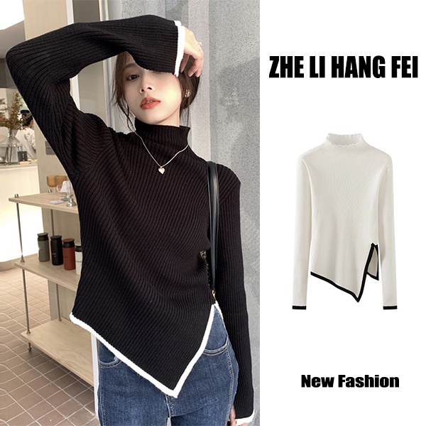 Knit Sweater Half High Collar Irregular Fashionable Fashionable Style Sweater