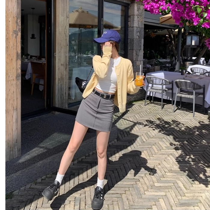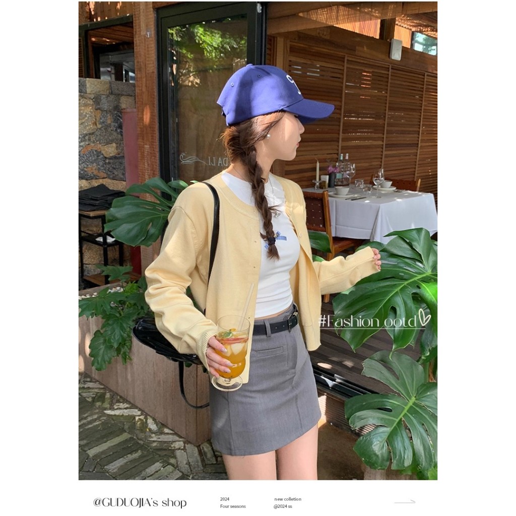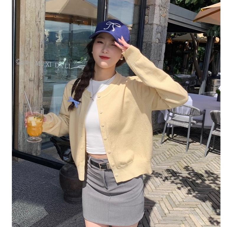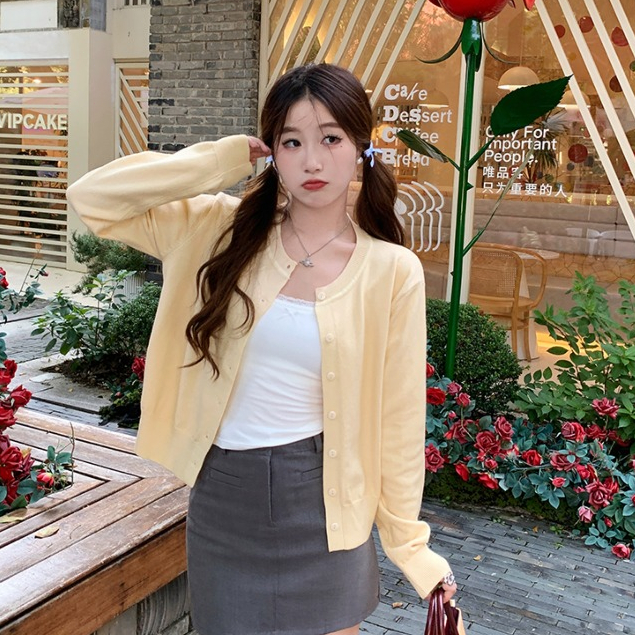 Knitted jacket cardigan women's autumn yellow thin loose top