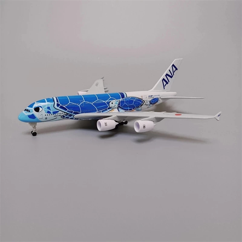 Koleksi Kapal Terbang Diecast Pesawat 20cm Japan ANA KaLa Turtle Airlines A380 Model Plane With Wheels Landing Gears