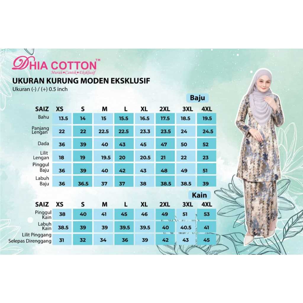 [KOLEKSI RAYA 2025] Baju Kurung Moden Eksklusif Dhia Cotton (Size XS - 4XL) - 100% Cotton