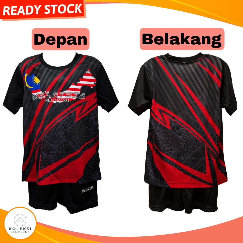 KOLEKSI SEMPURNA Set Baju Jersey Malaysia 5-13 Tahun Jersi Malaysia Kanak-Kanak Baju Bola Set