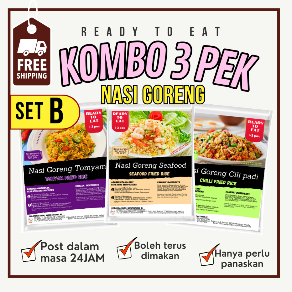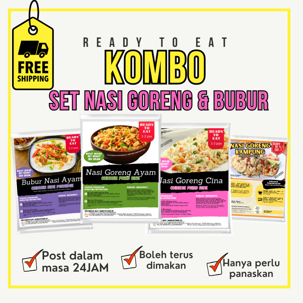 KOMBO NASI GORENG & BUBUR instant fried rice chicken porridge Ready to eat MRE travel food KEMBARA MEALS halal