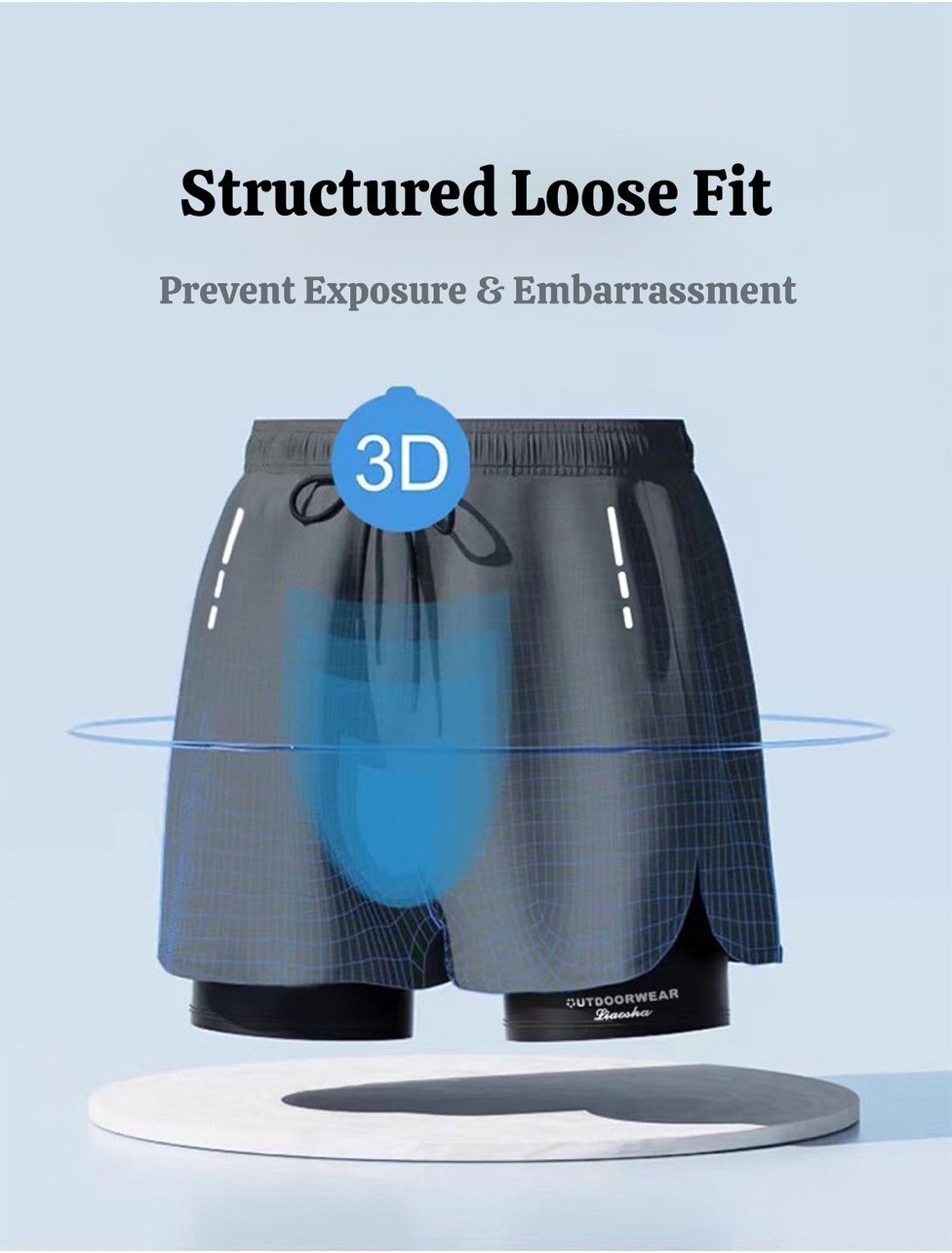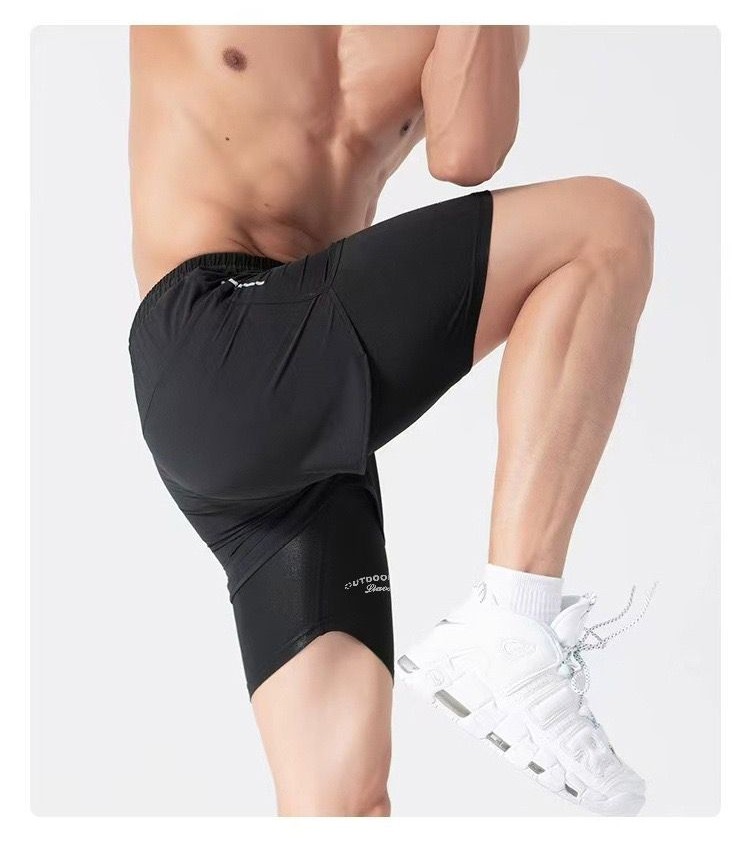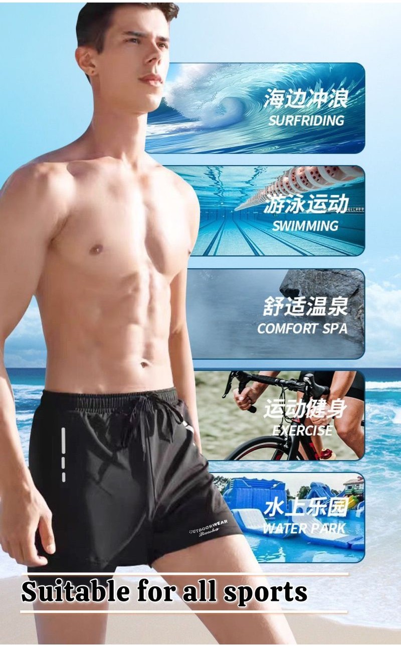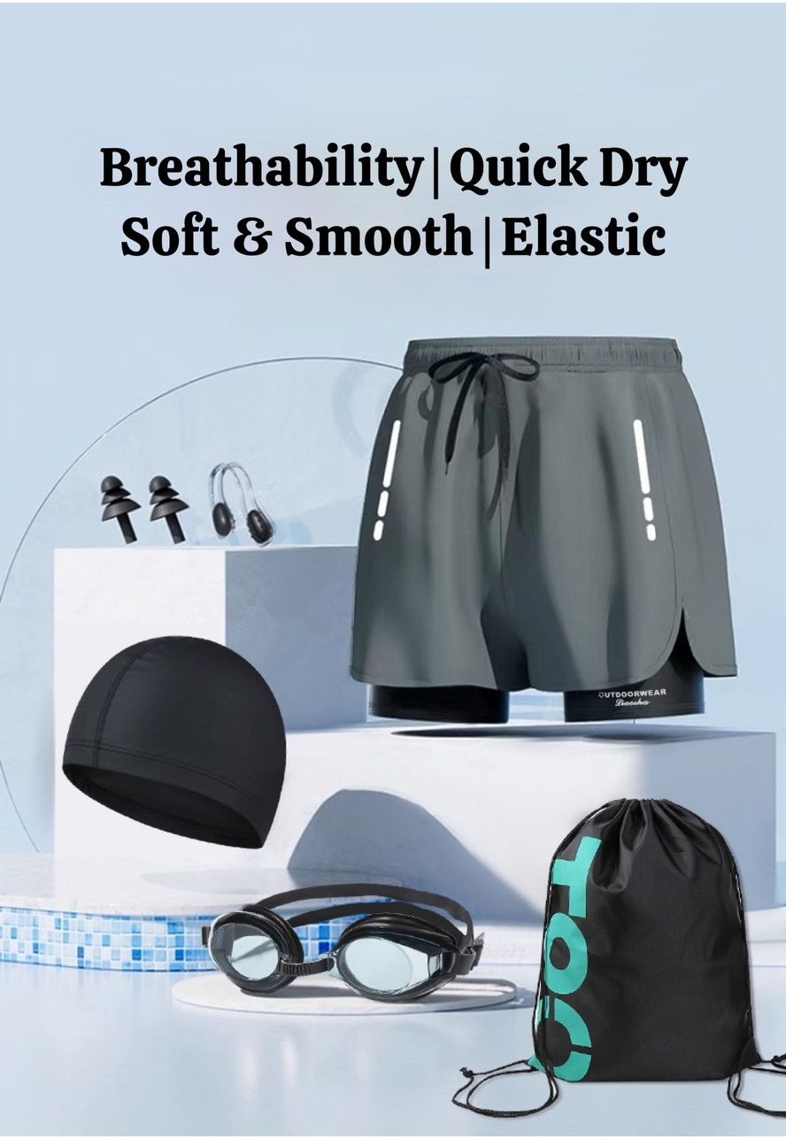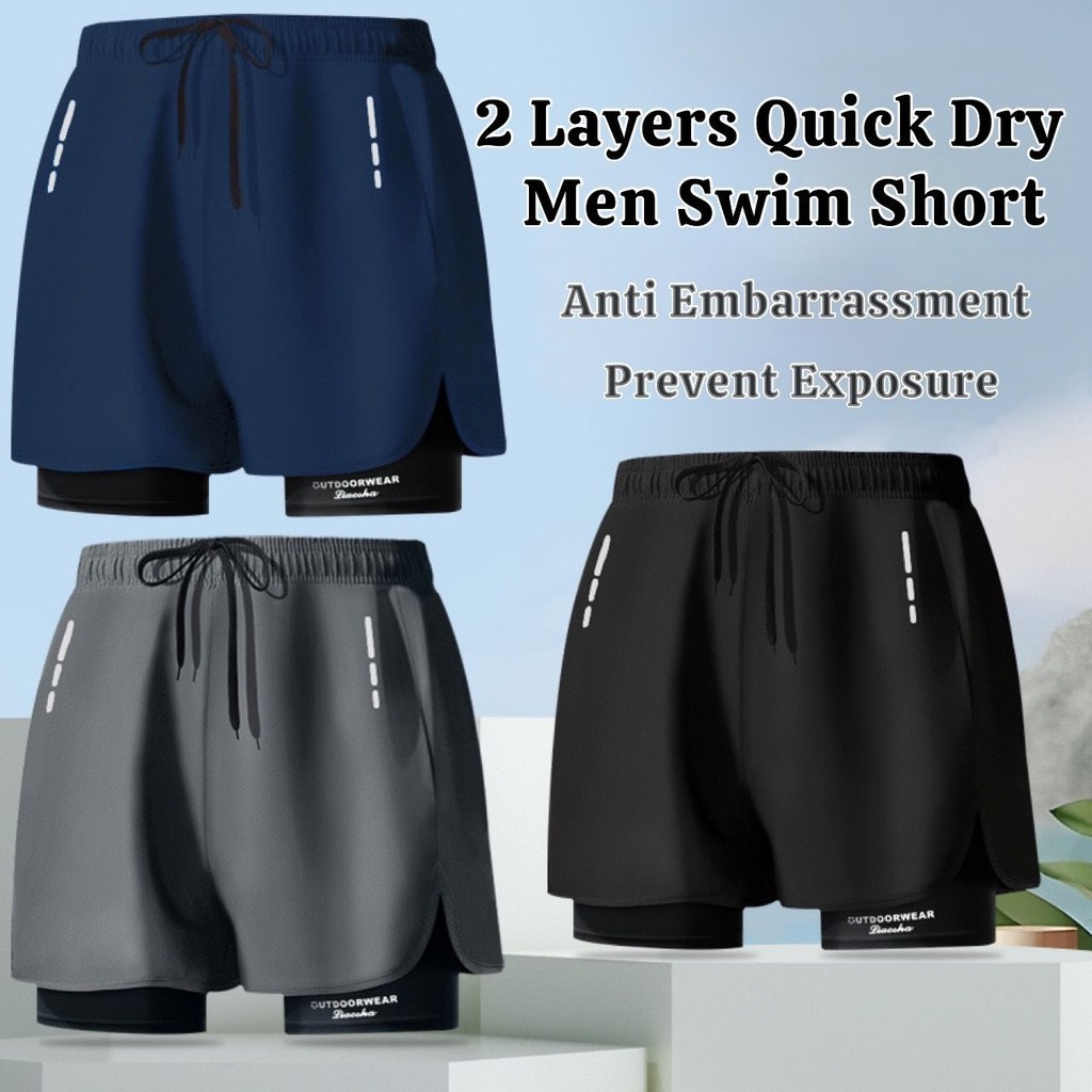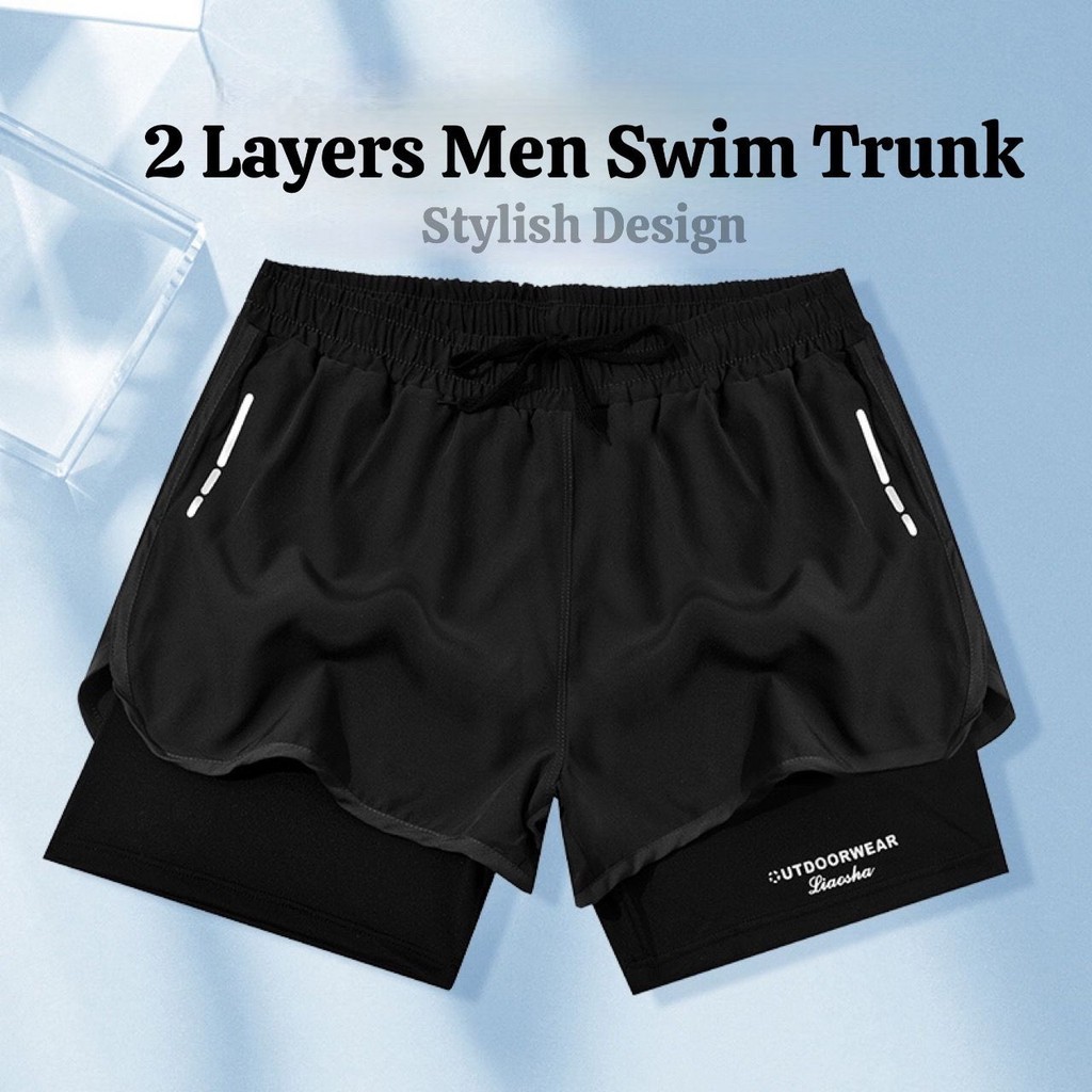 ??? KOOWOO ???2 Layers Men Swim Short Soft Elastic Polyester Quick Dry Swimming Pakaian Renang Light