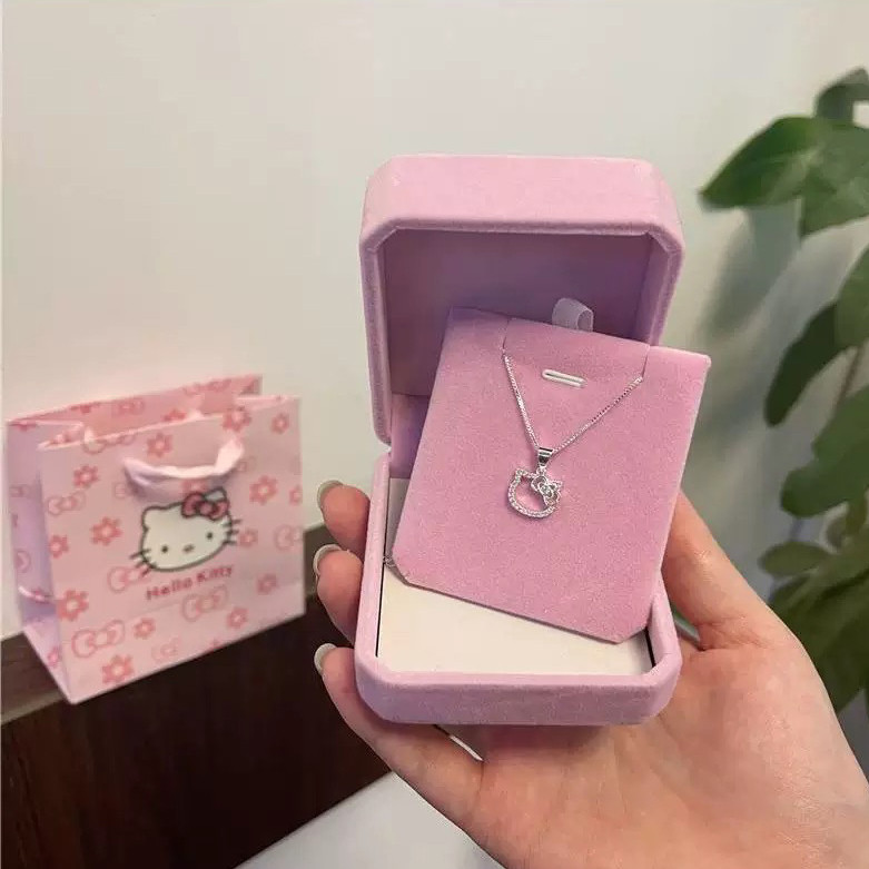 Korea fashion diamond HelloKitty necklace female silver color ins fine student birthday gift