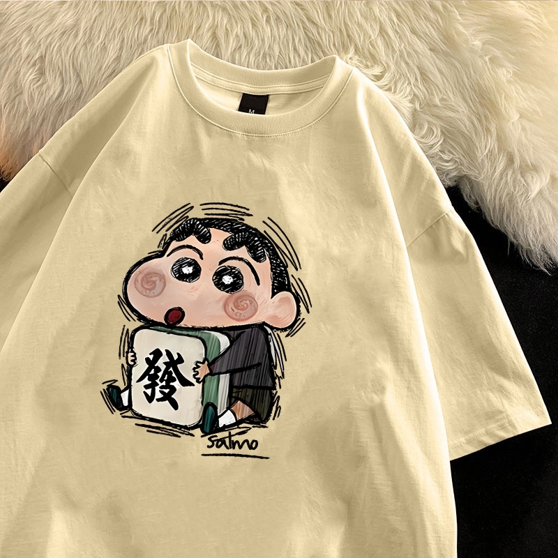 Korea style Baju Lelaki | Oversize T-shirt 100% kapas | Crayon Shin-chan top kasual yang bergaya