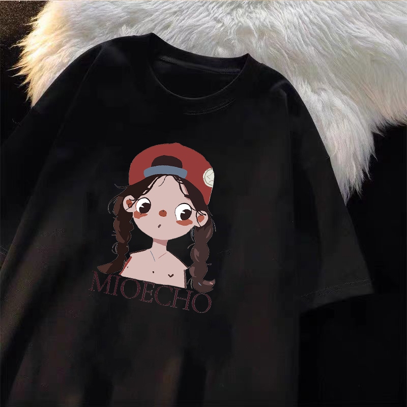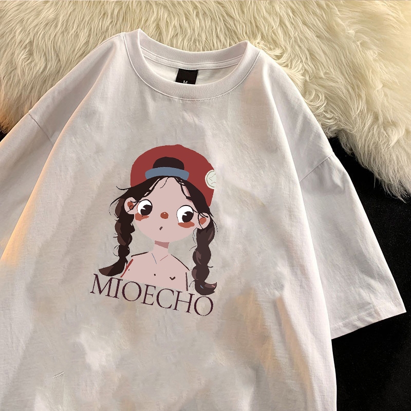 Korea style Baju wanita | Oversize T-shirt 100% kapas | Corak gadis kecil top kasual yang bergaya