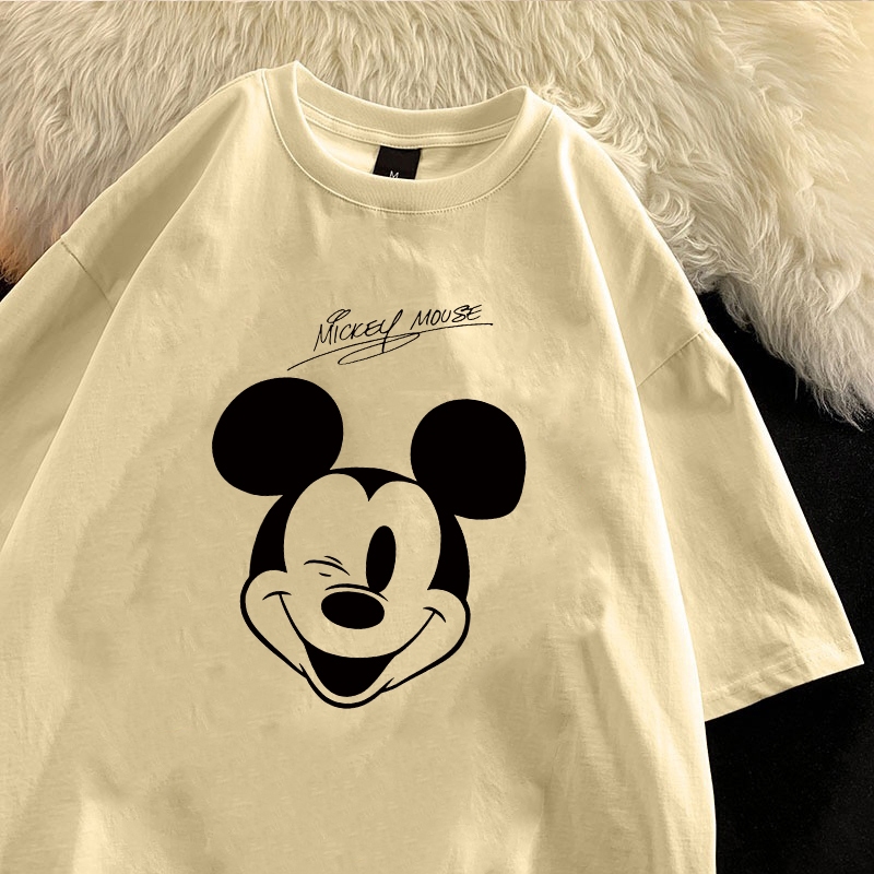 Korea style Baju wanita | Oversize T-shirt 100% kapas | Mickey top kasual yang bergaya