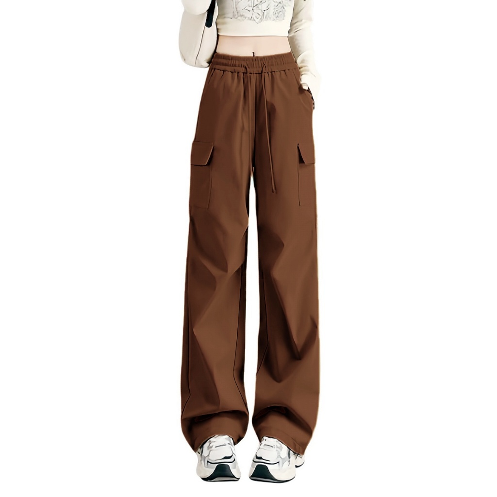 Korean cargo pants women straight long pants casual palazo drawstring Elastic Waist24-36)4pockets?fast delivery BABAOTU