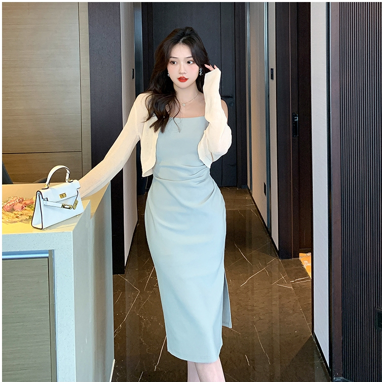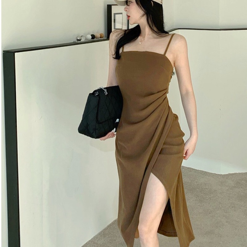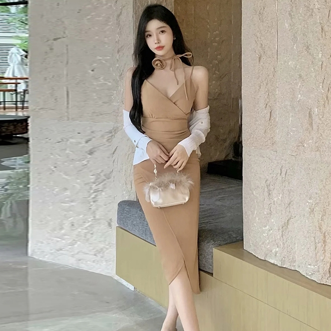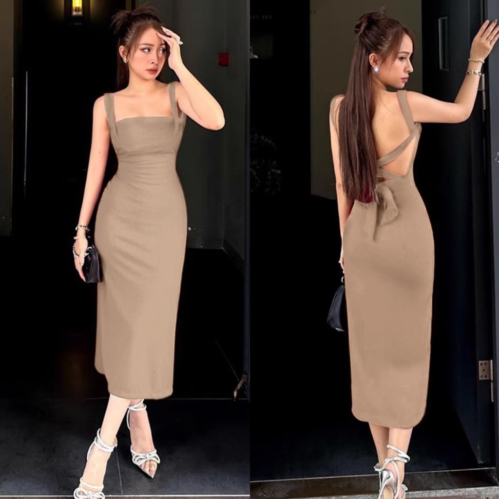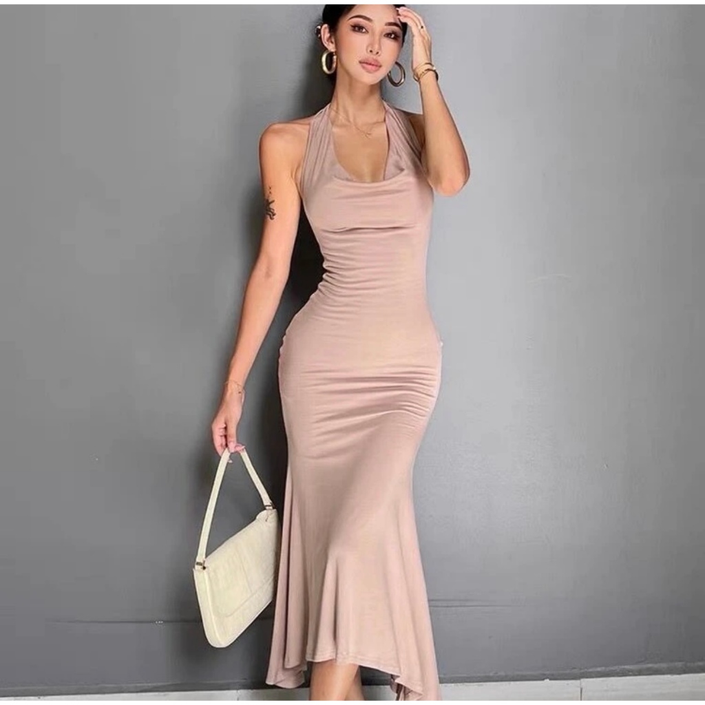korean sexy halter backless bodycon dress with slit beige midi elegant off shoulder dresses formal