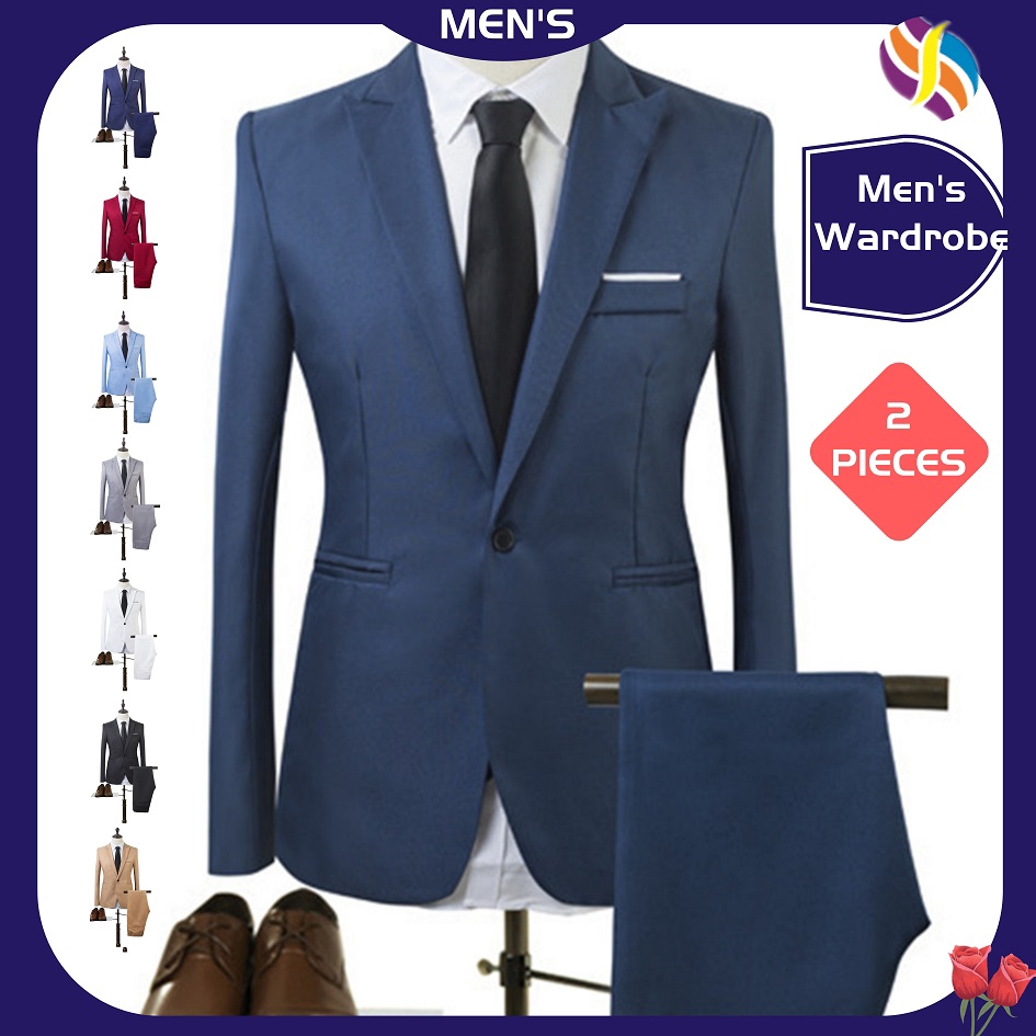 ❤️Korean Style Men's Suits Jacket Wedding Dress Suits Formal Business Blazer 2-Pieces Suit Slim Fit Coat