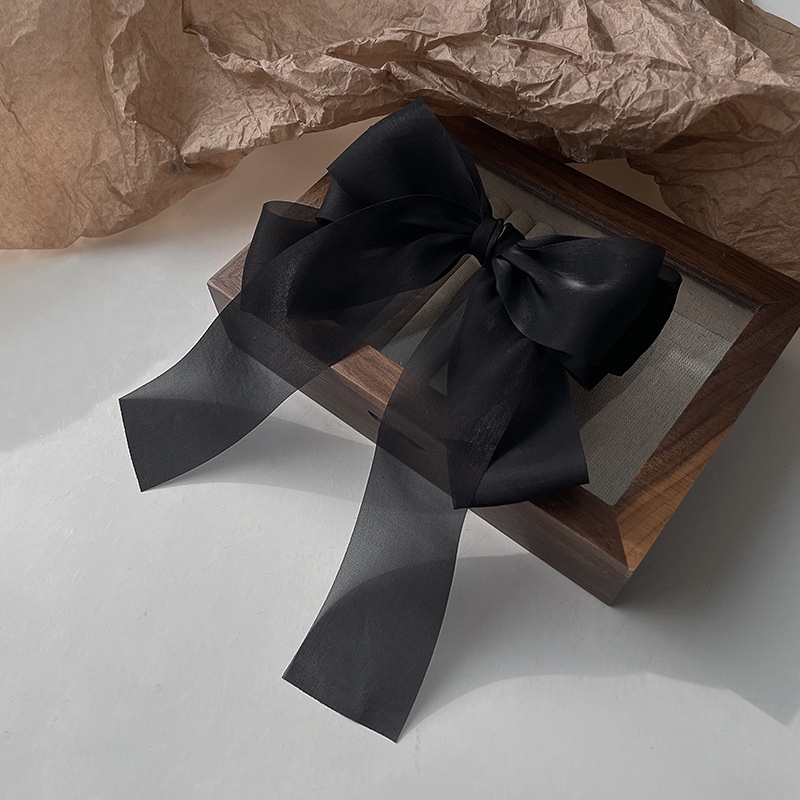 Korean Style New Temperament Black Yarn Bow Spring Clip Hair Clip Fashion Girl Hair Accessories