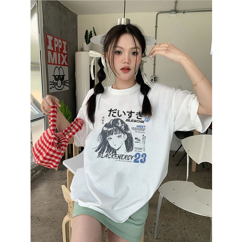 Korean style women clothing | Oversized Crew Neck T-shirt 100% cotton | cartoon print stylish casual tops y2k
