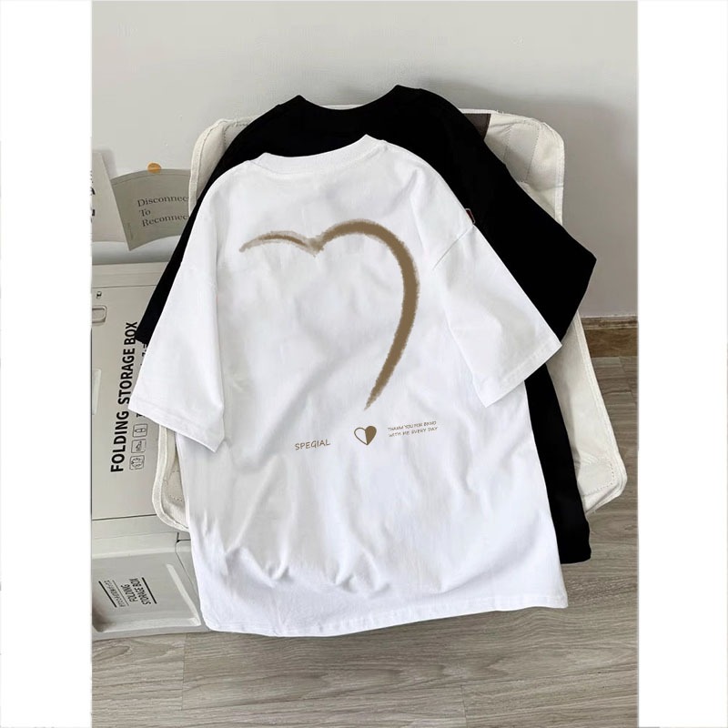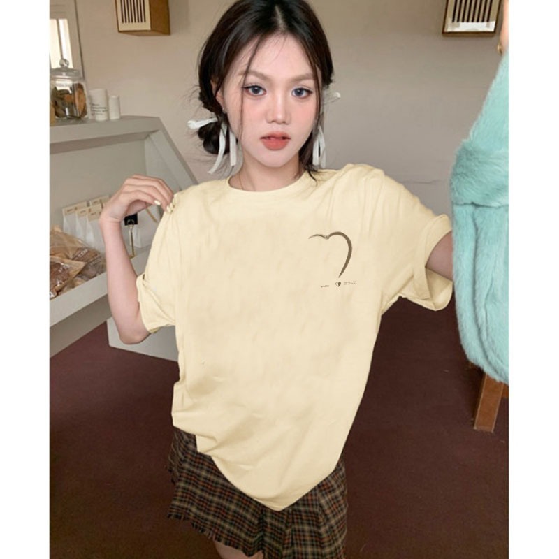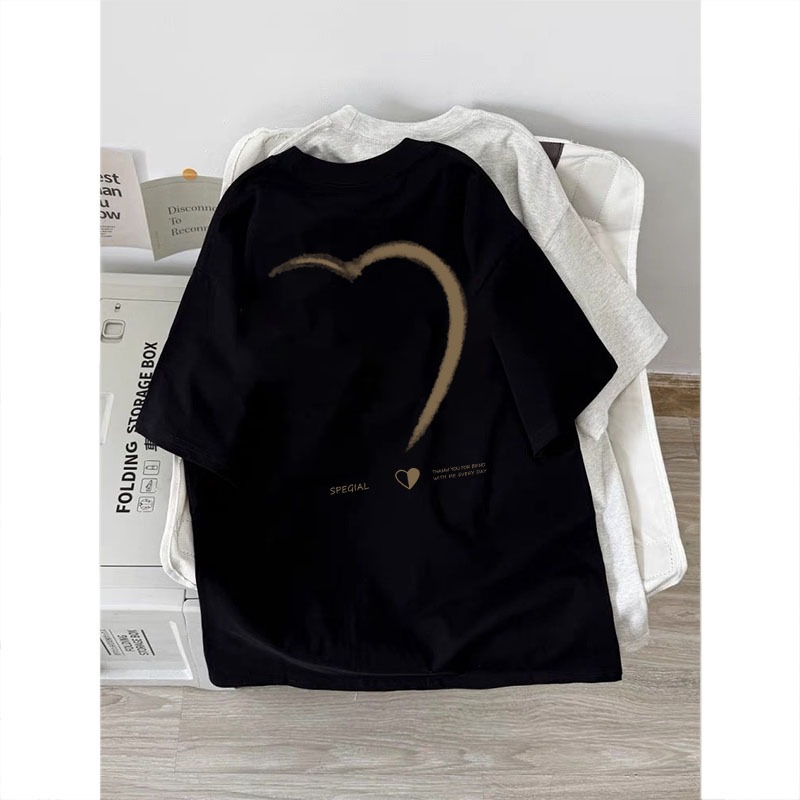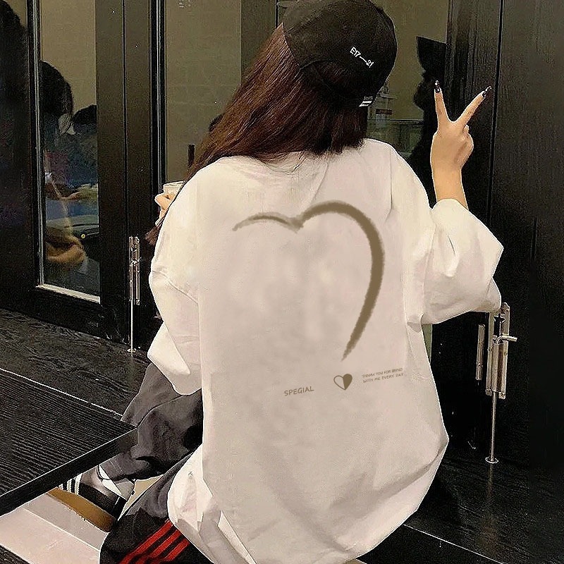 Korean style women clothing | Oversized Crew Neck T-shirt 100% cotton | heart print stylish casual tops y2k