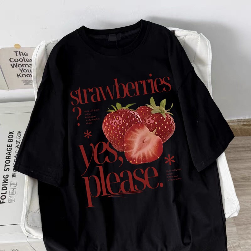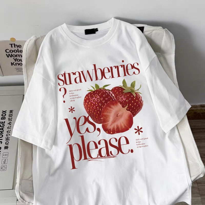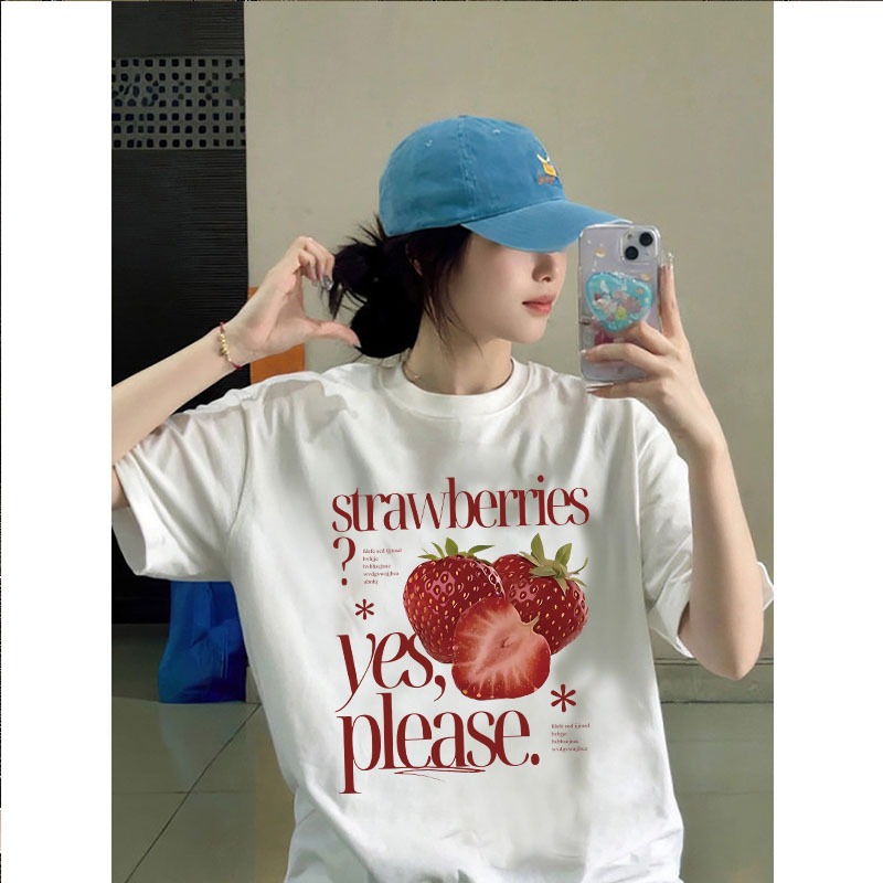 Korean style women clothing | Oversized Crew Neck T-shirt 100% cotton | Strawberry print stylish casual tops y2k