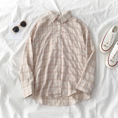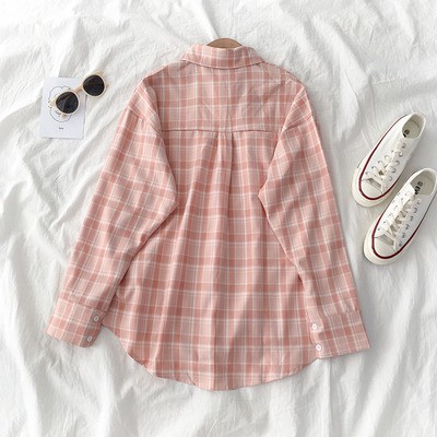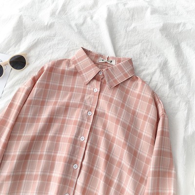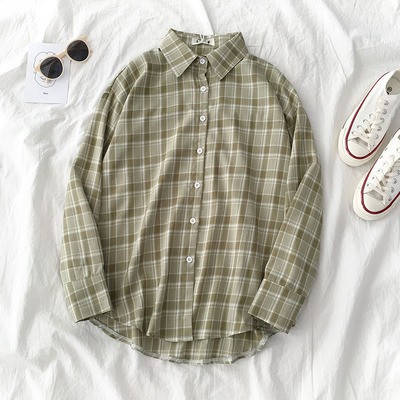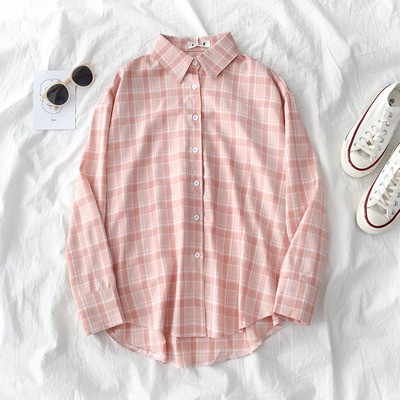 korean style women ladies long sleeve vintage plaid shirt blouse baju wanita lengan panjang