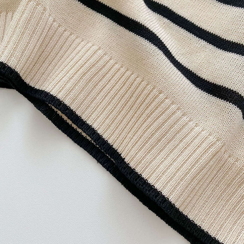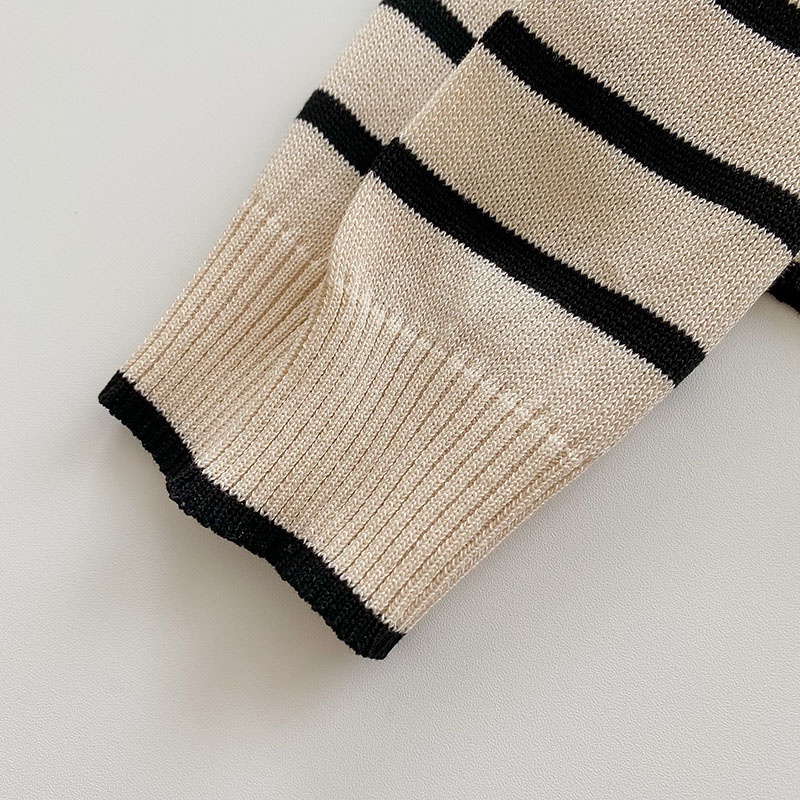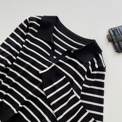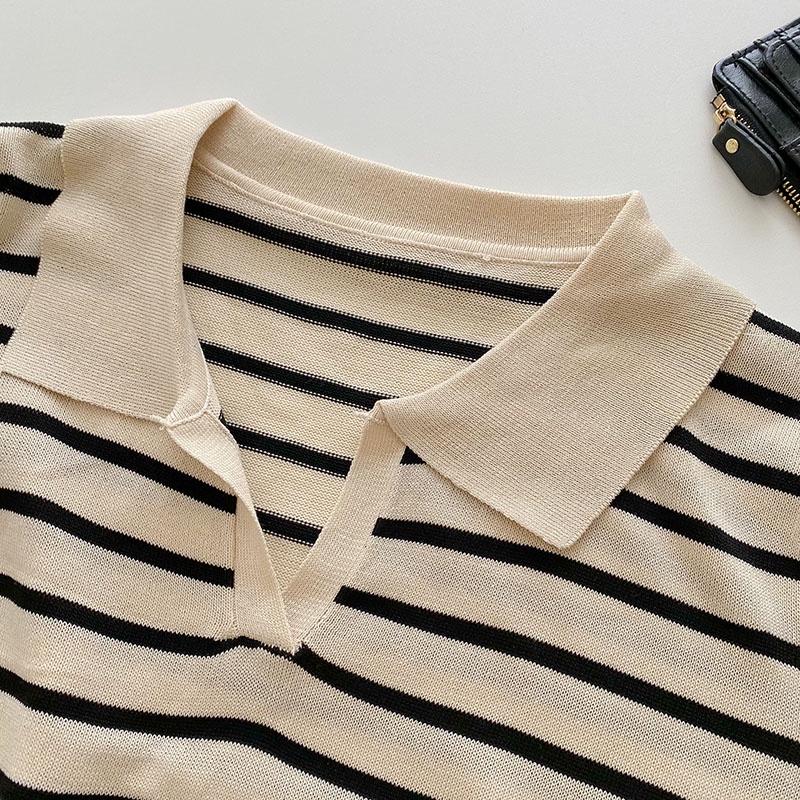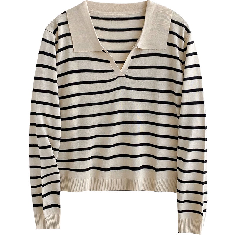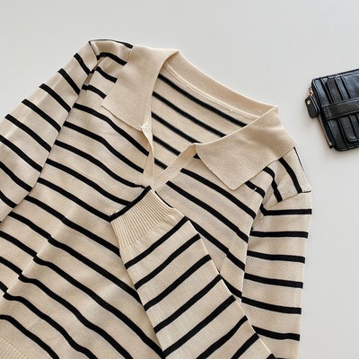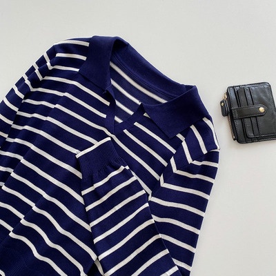 Korean Style Women Ladies Loose Knitted Striped Long Sleeve Shirt Blouse Baju Baju Wanita Lengan Panjang Tops
