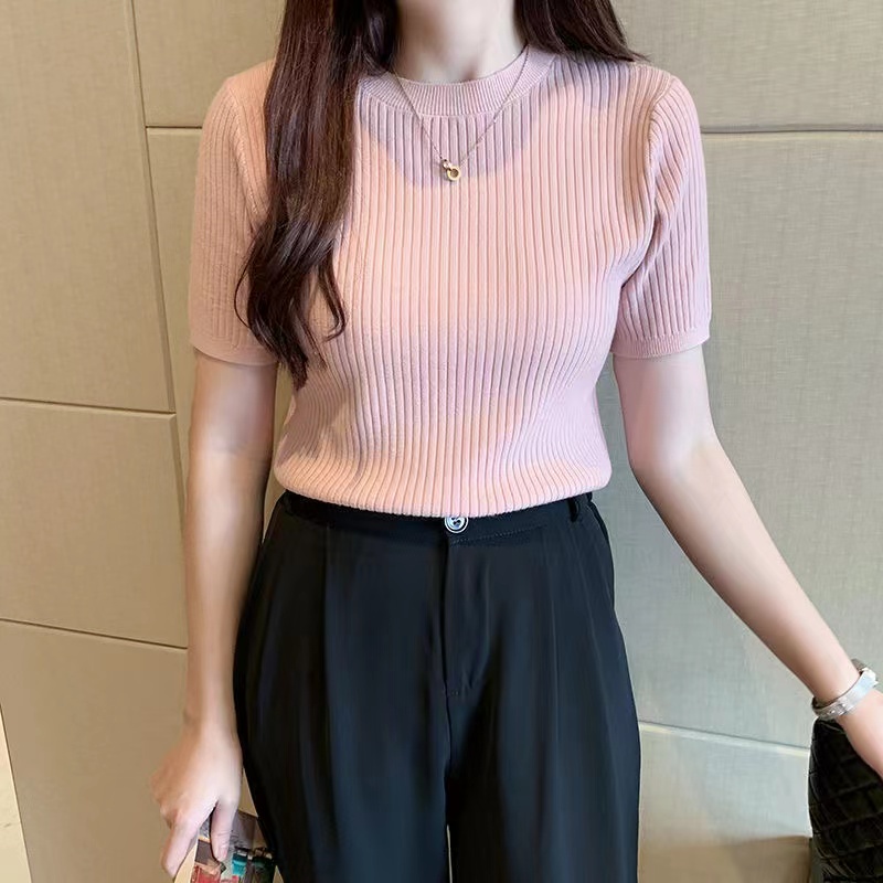 Korean Style Women Ladies Slim Round Neck Knitted Tops Long Sleeve Shirt Blouse Baju Baju Wanita Lengan Panjang New Ready Stock