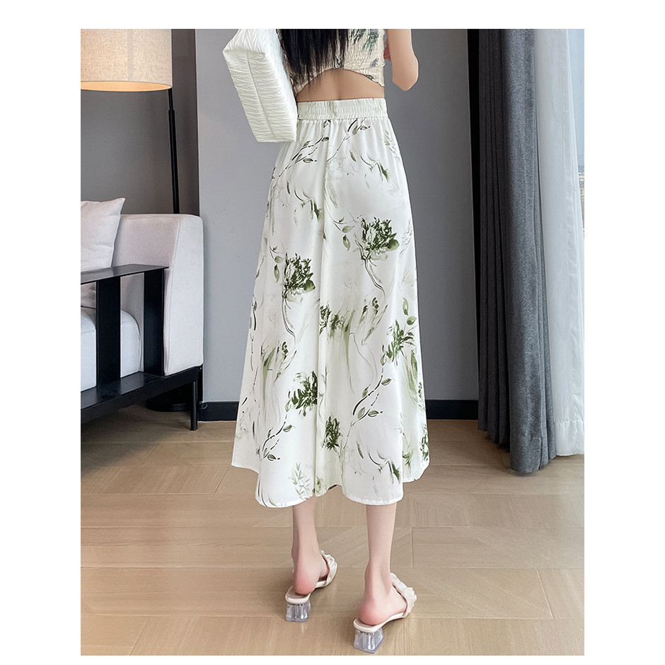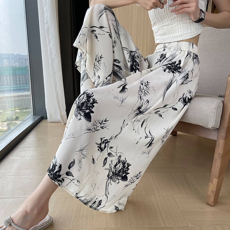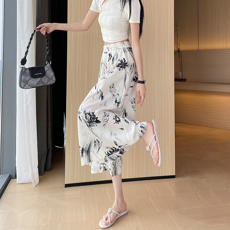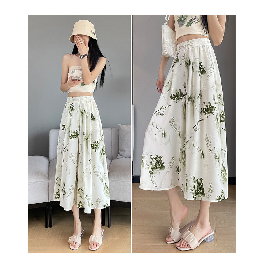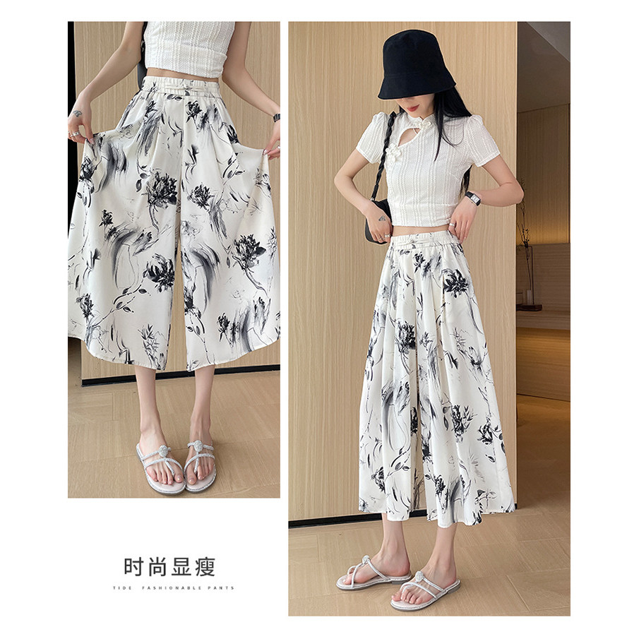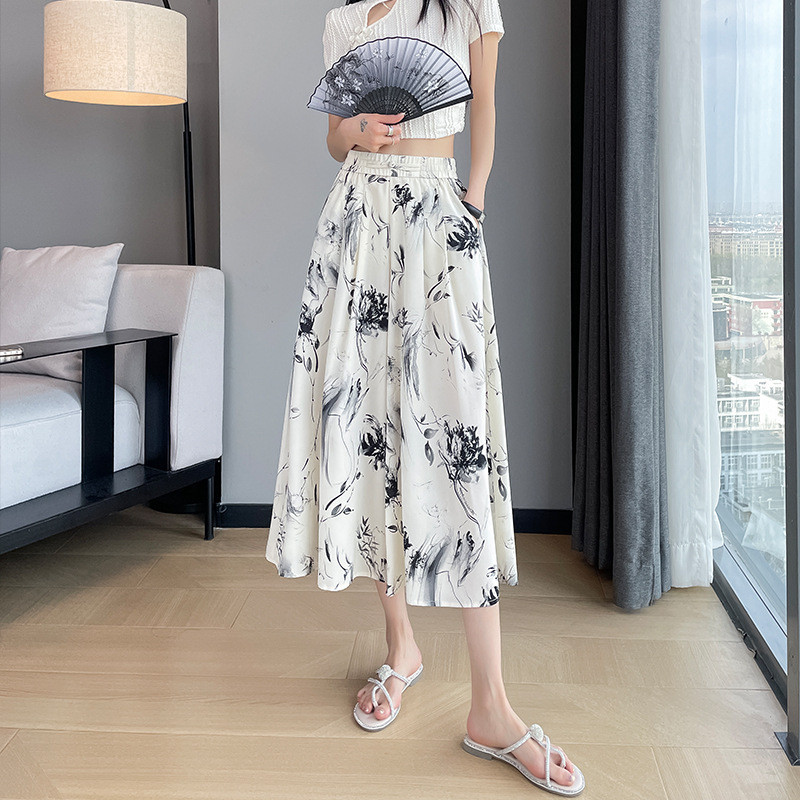 Korean Summer Floral Culottes Skort - High Elastic Waist, Wide Leg, Light Fabric