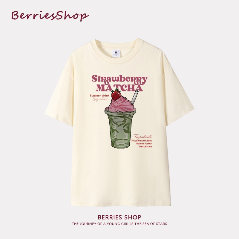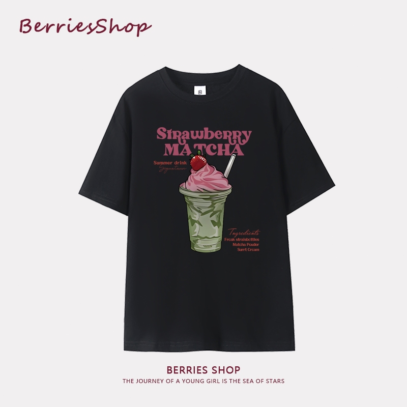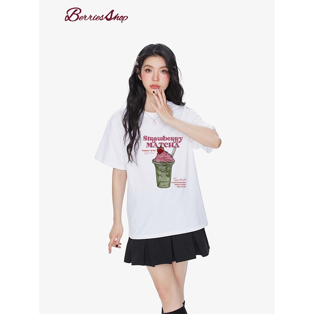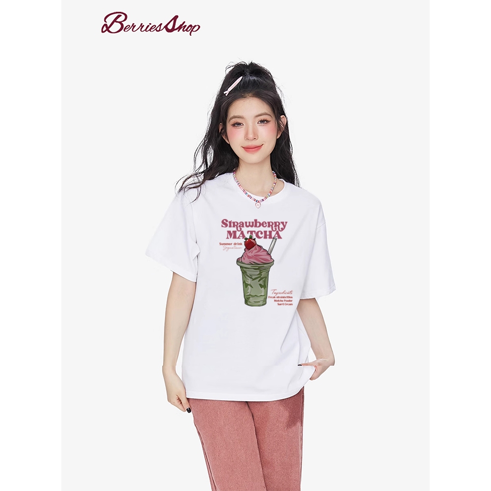 Korean version short sleeved top loose dessert strawberry ice cream printed summer women's T-shirt