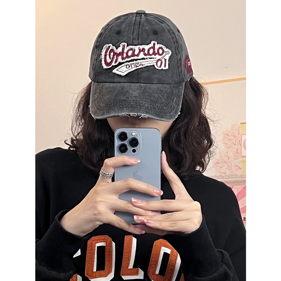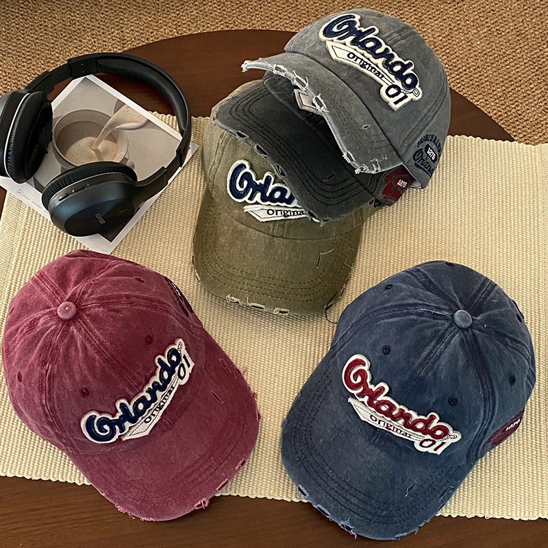 Korean Vintage Distressed Denim Cap - Retro Embroidered Letter Baseball Hat Unisex​​