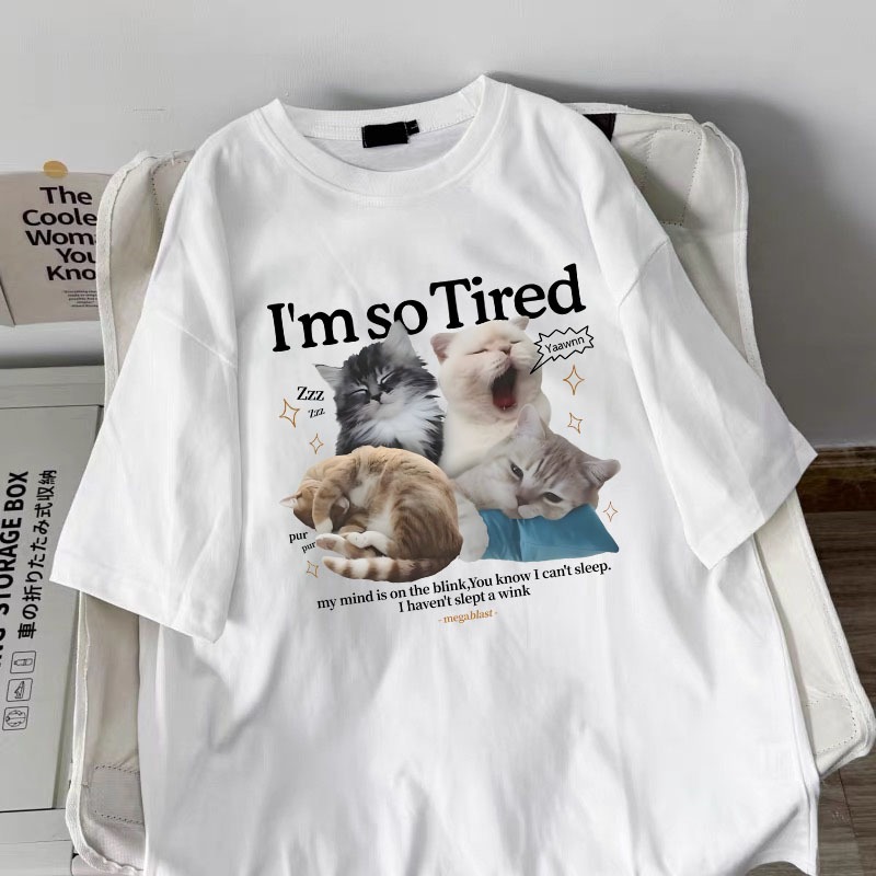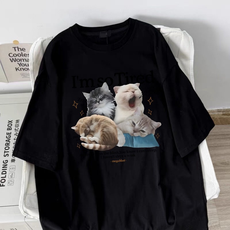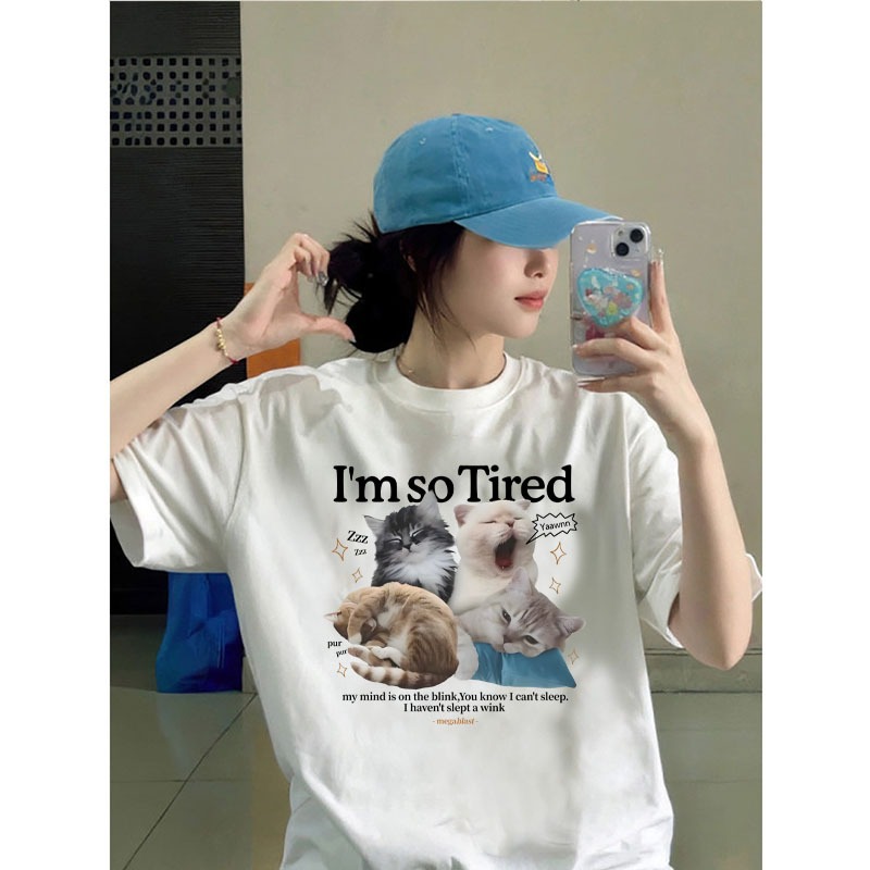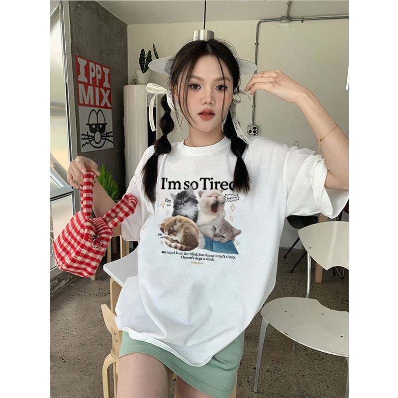 Korean women clothing | Oversized Crew Neck T-shirt 100% cotton | cat meme print stylish casual tops y2k