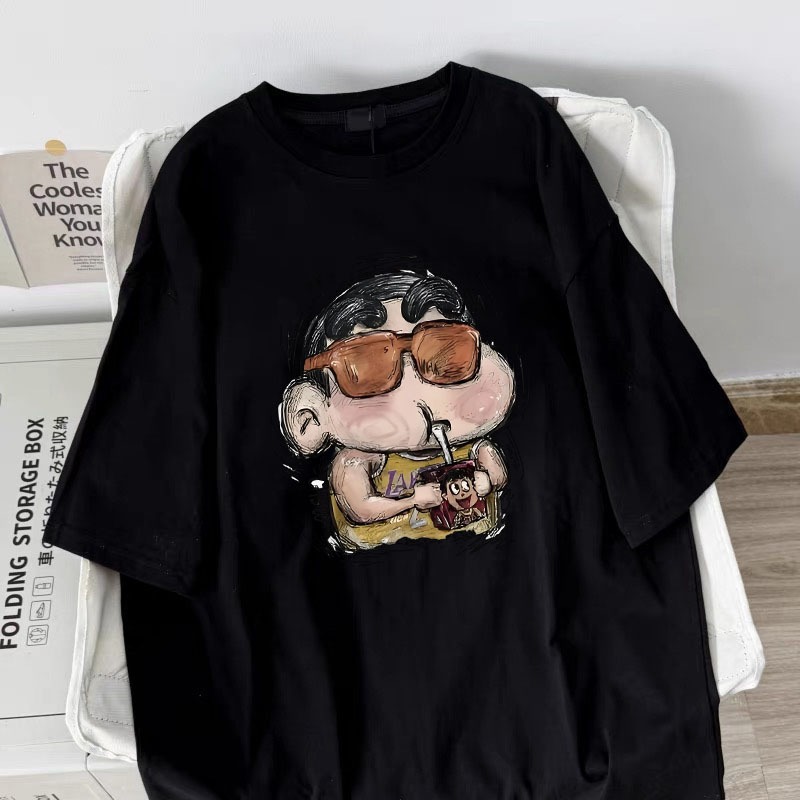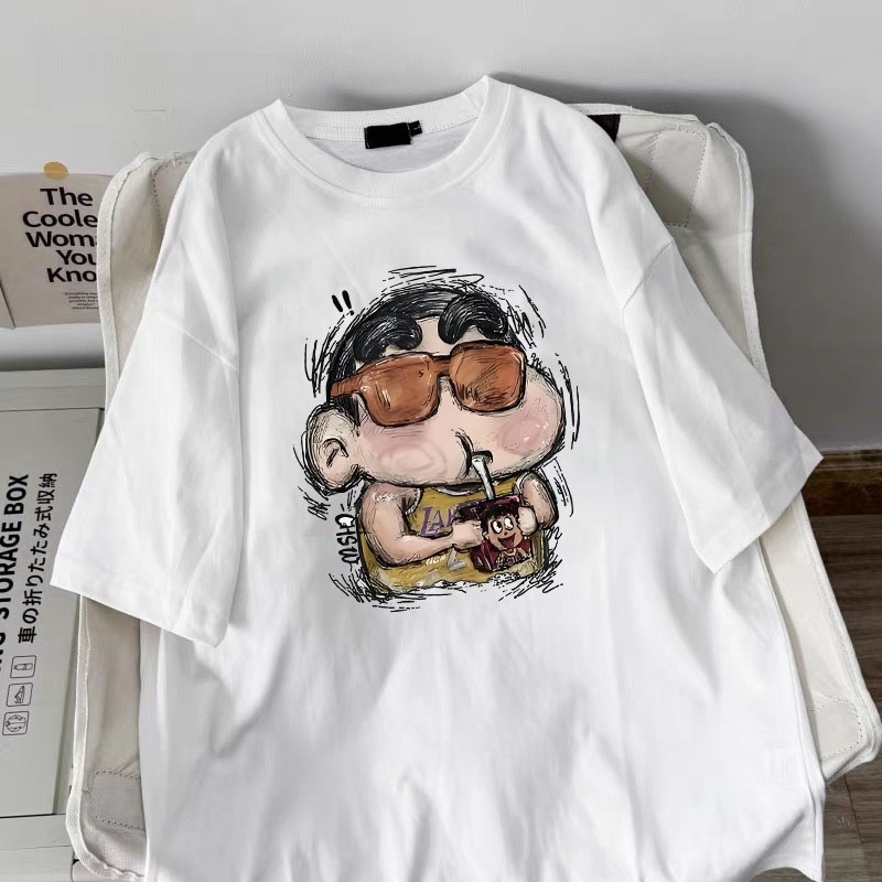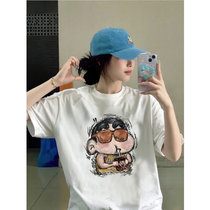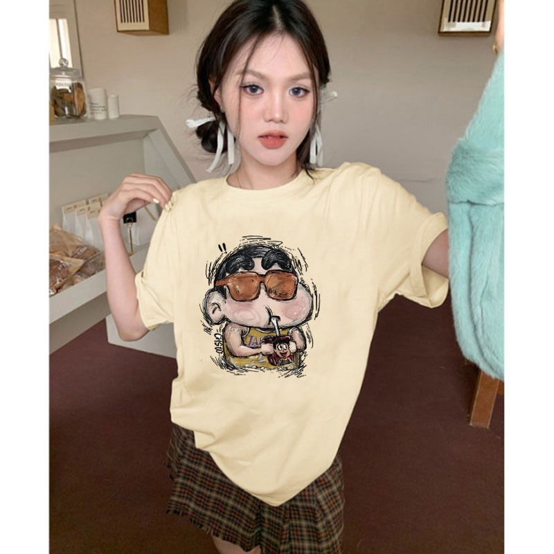 Korean women clothing | Oversized Crew Neck T-shirt 100% cotton | Crayon Shin-chan print stylish casual tops y2k