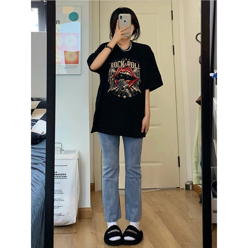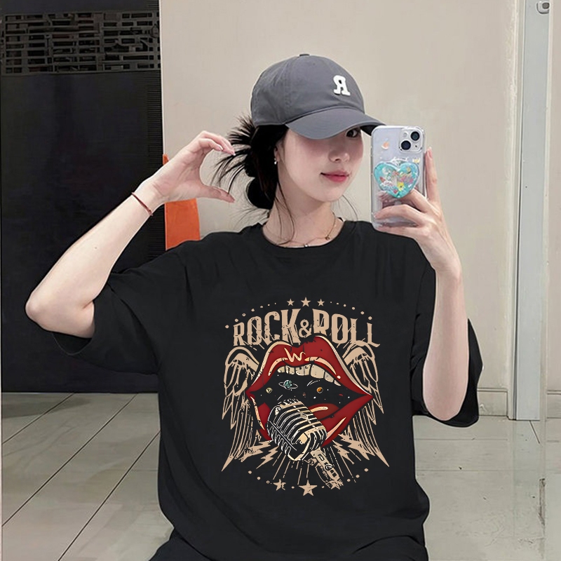 Korean women clothing | Oversized T-shirt 100% cotton | LIPS stylish casual tops