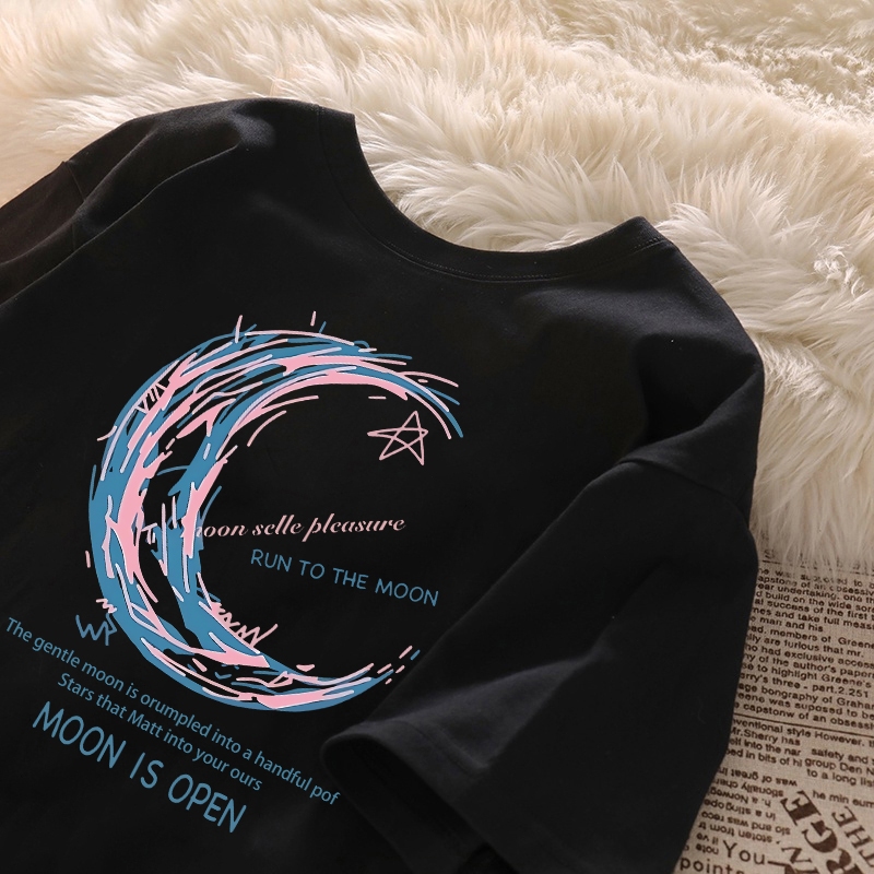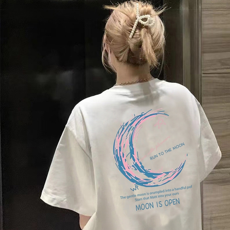 Korean women clothing | Oversized T-shirt 100% cotton | Moon stylish casual tops