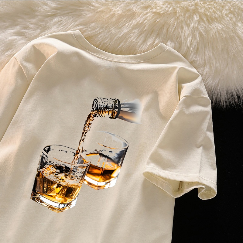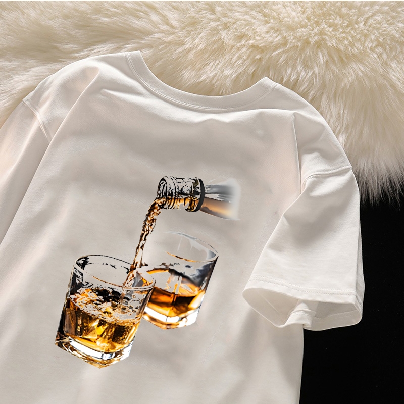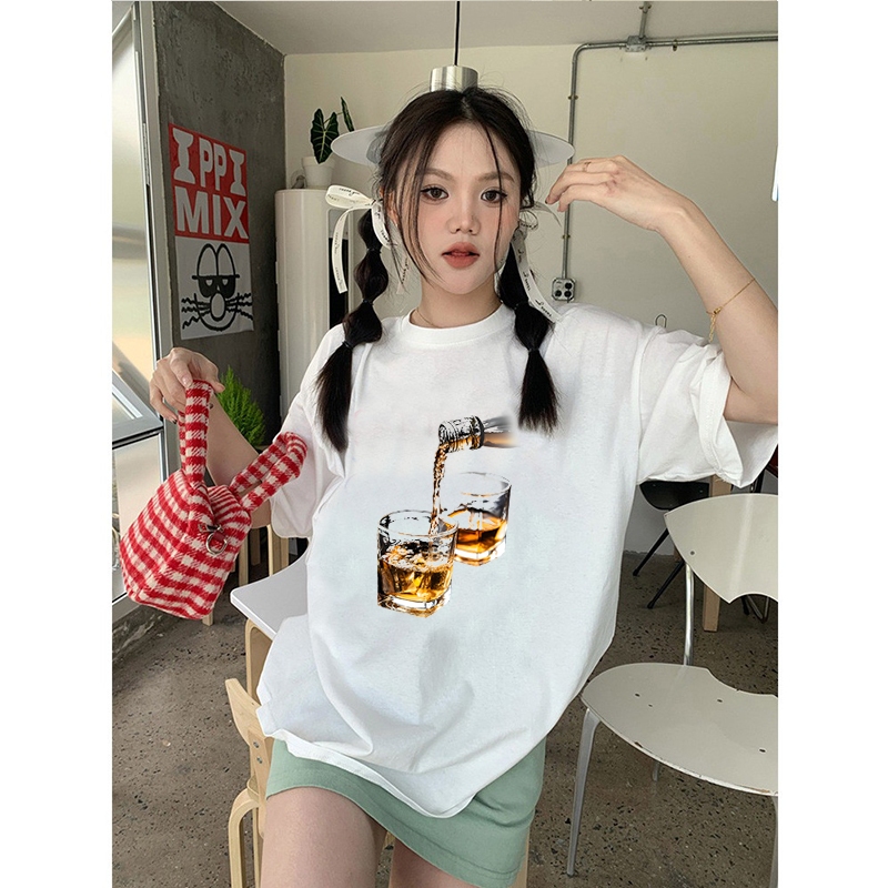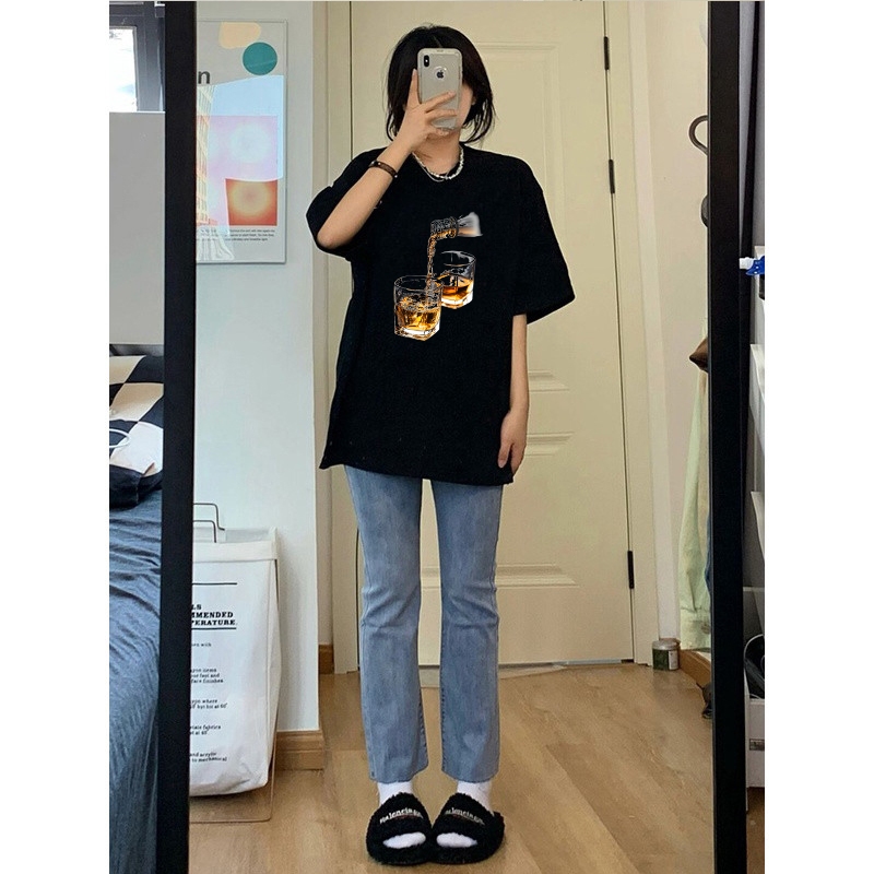 Korean women clothing | Oversized T-shirt 100% cotton | Wine glass pattern stylish casual tops