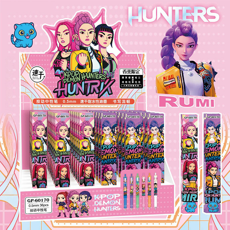Kpop Demon Huntrix Mechanical Pencil Demon Hunters Rumi Pattern Gel Pen Set Student Stationery Kids Gift 猎魔女团按动铅笔