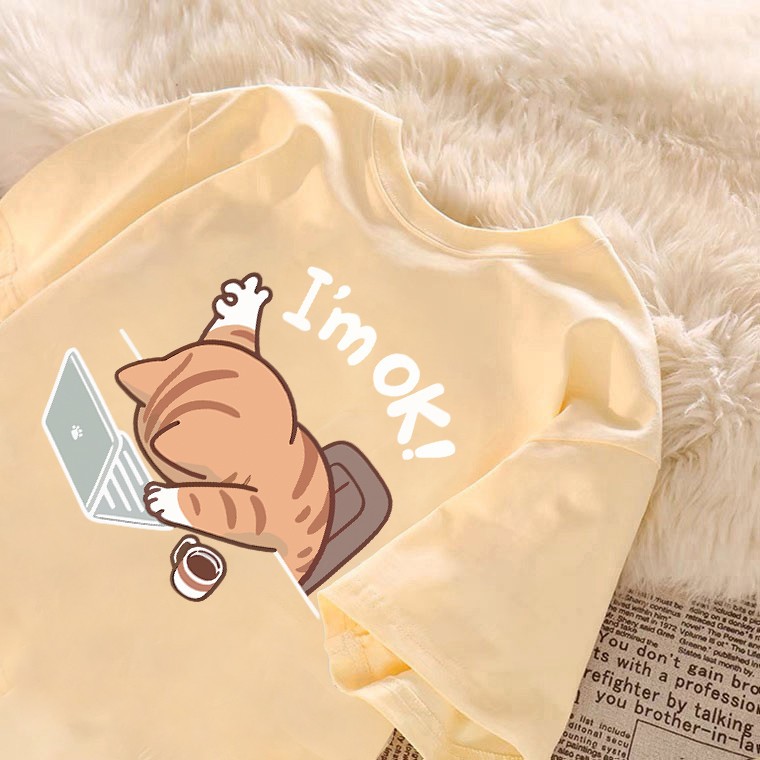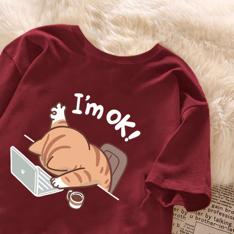 kumikumi Korean Aesthetic Oversized T-Shirt for Women - Round Neck Im Ok Print