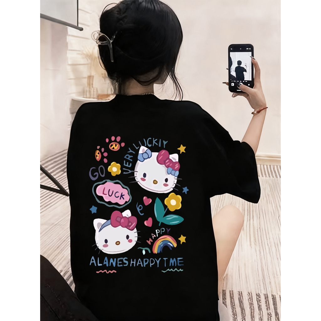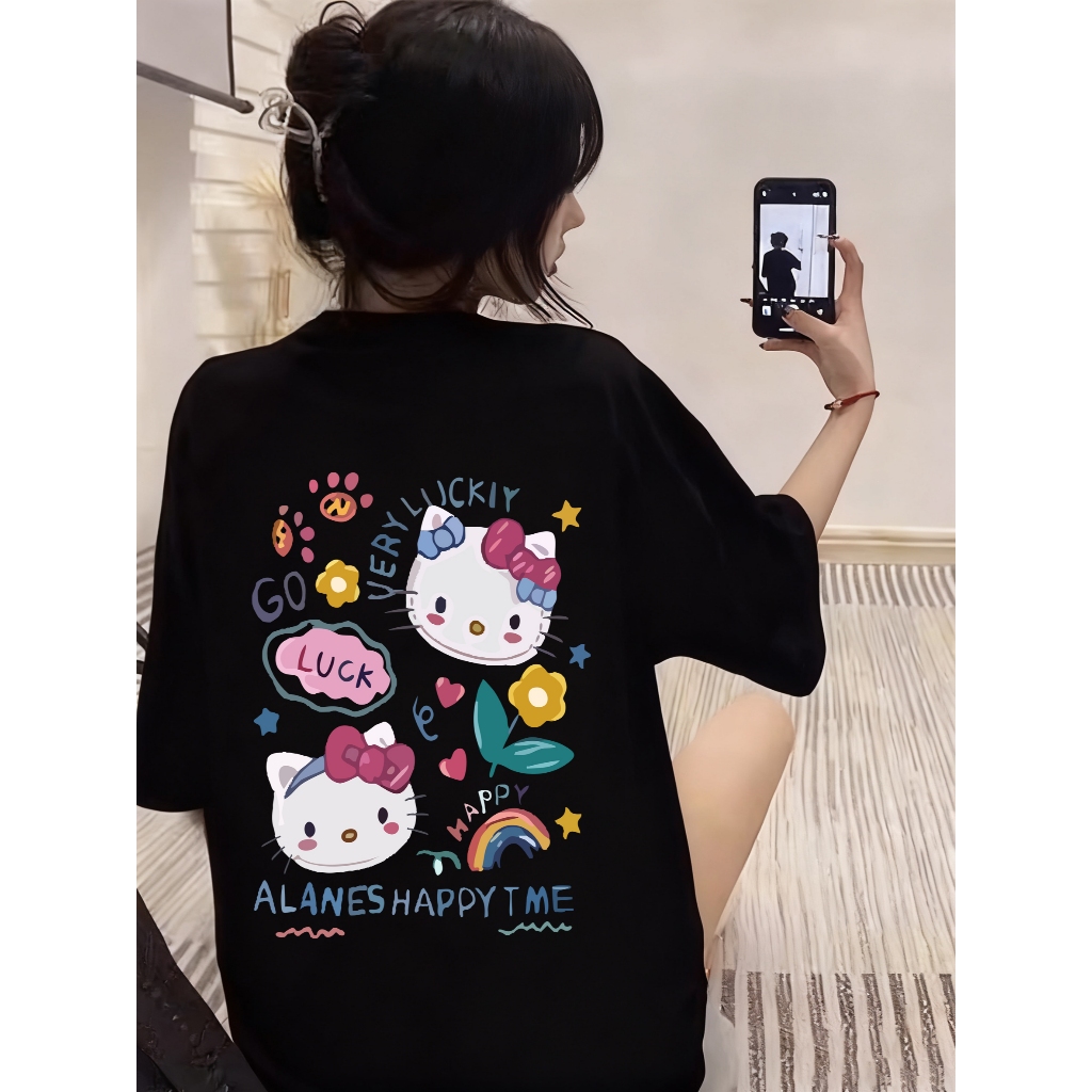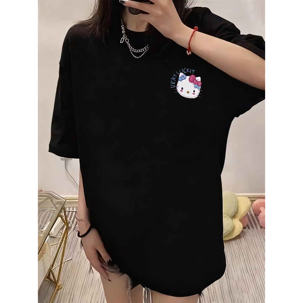 kumikumi Korean cute aesthetic shirt round neck T-shirt for women oversized Hello Kitty print