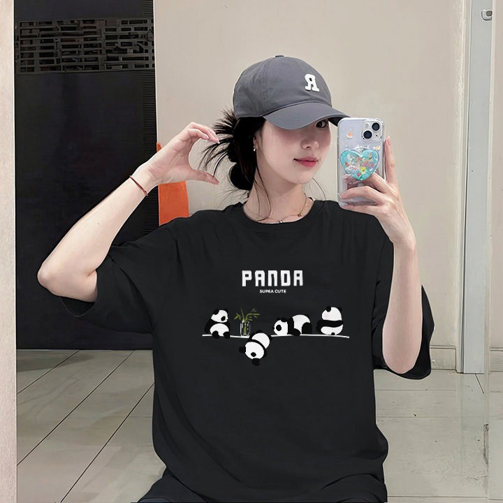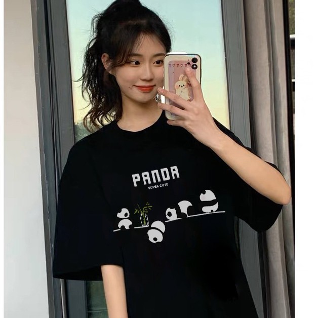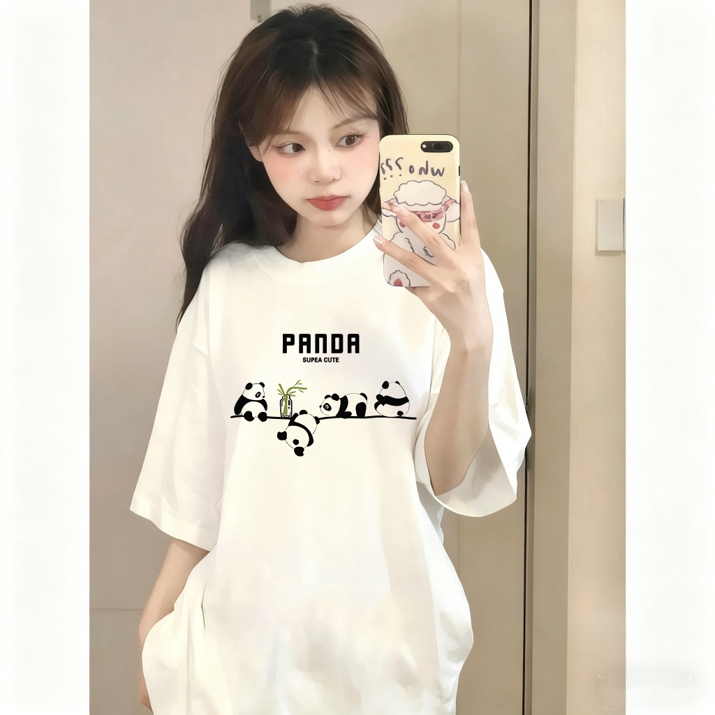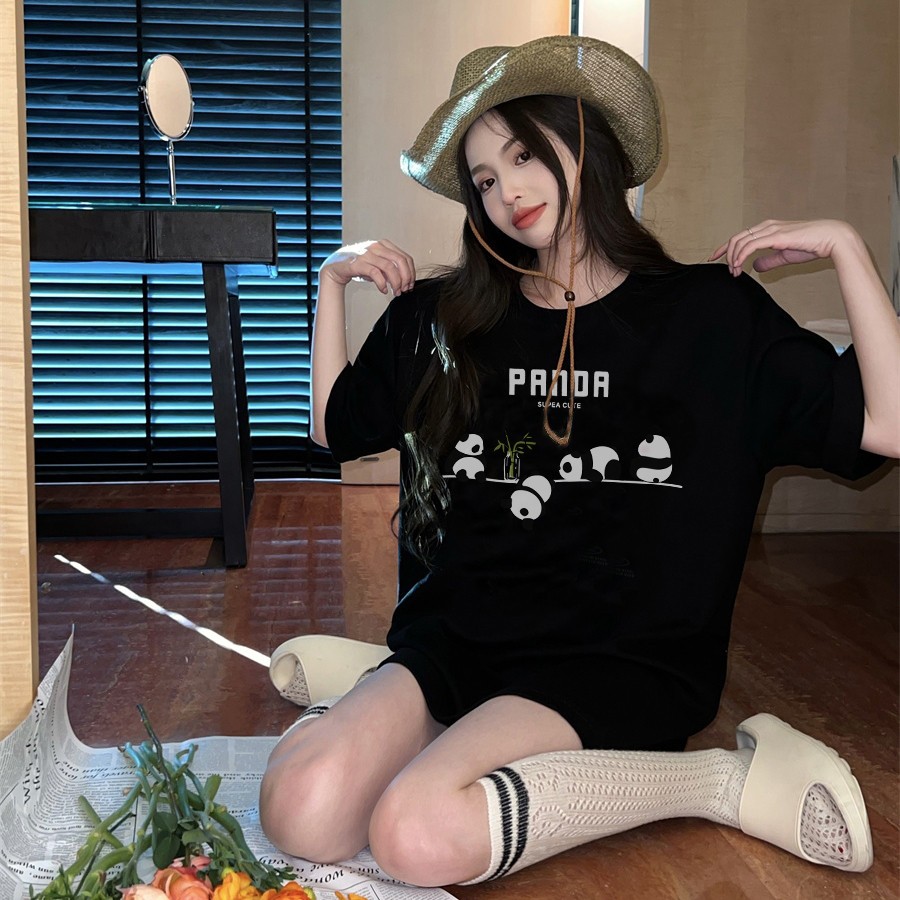 kumikumi Korean panda Print oversized casual T-shirt for women t shirt perempuan