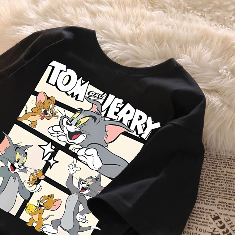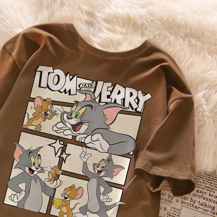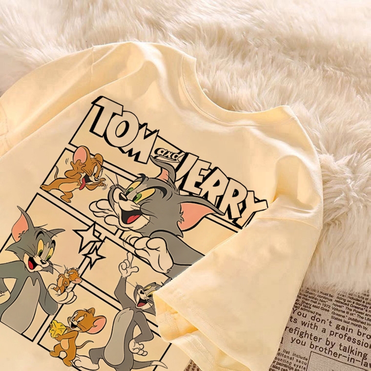kumikumi Korean retro cat and mouse print oversized T-shirt for women