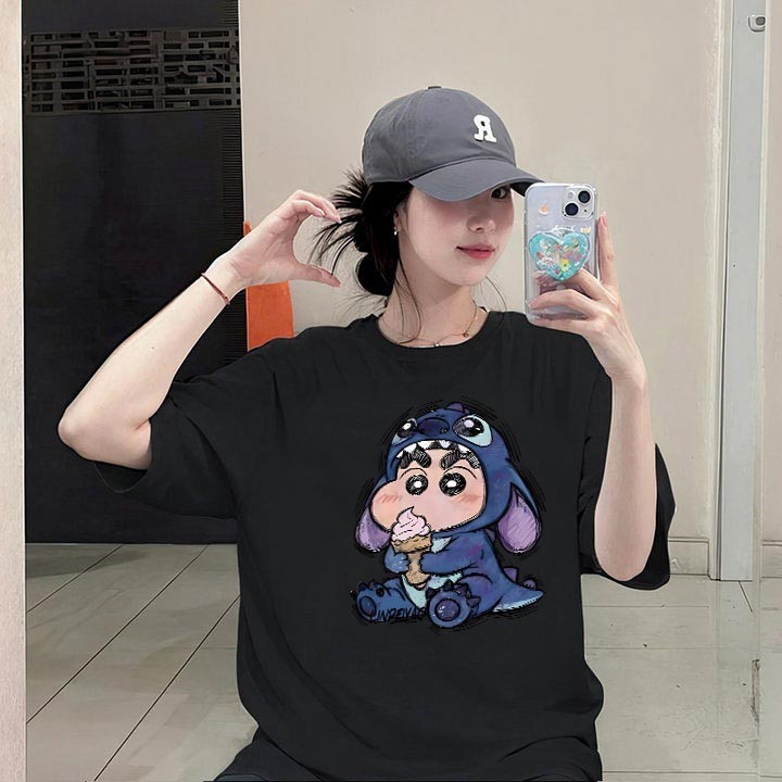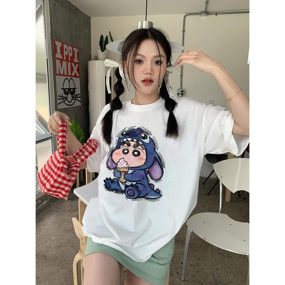 kumikumi Korean retro Crayon Shin-chan Print oversized baggy T-shirt for women top